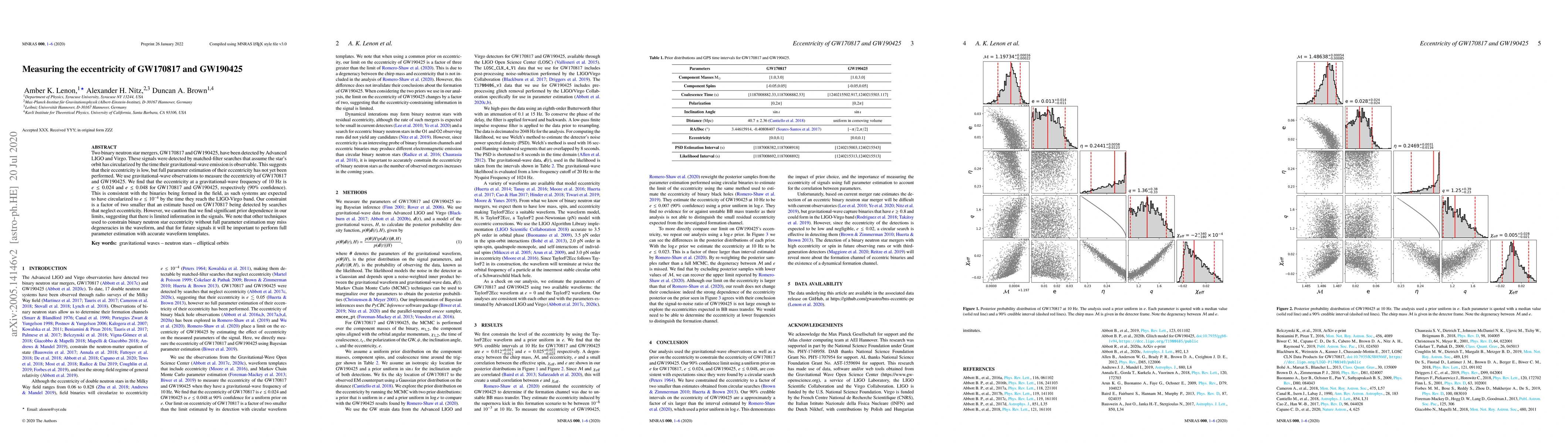 The research uses Bayesian inference with gravitational-wave data from Advanced LIGO and Virgo to measure the eccentricity of GW170817 and GW190425. The analysis employs TaylorF2Ecc waveform model, which includes eccentricity corrections, and compares results with a TaylorF2 model.