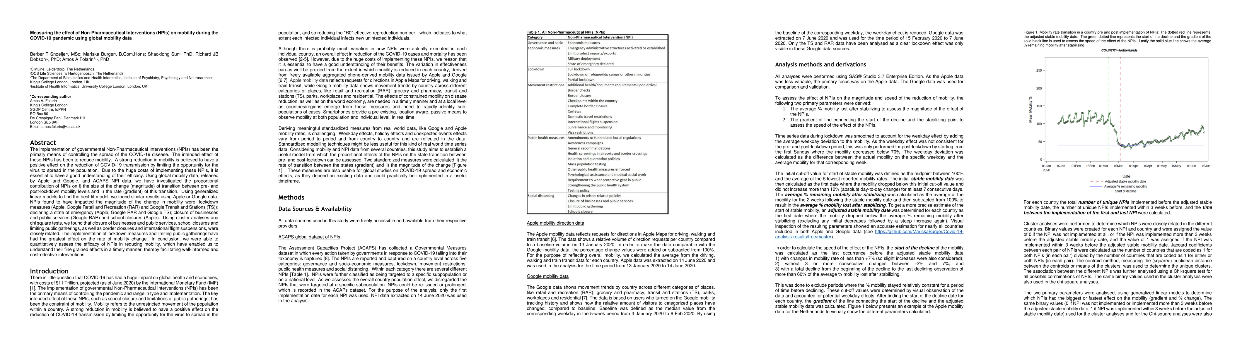 The study used generalized linear models and cluster analysis to quantify the efficacy of NPIs in reducing mobility, providing insights for cost-effective interventions.