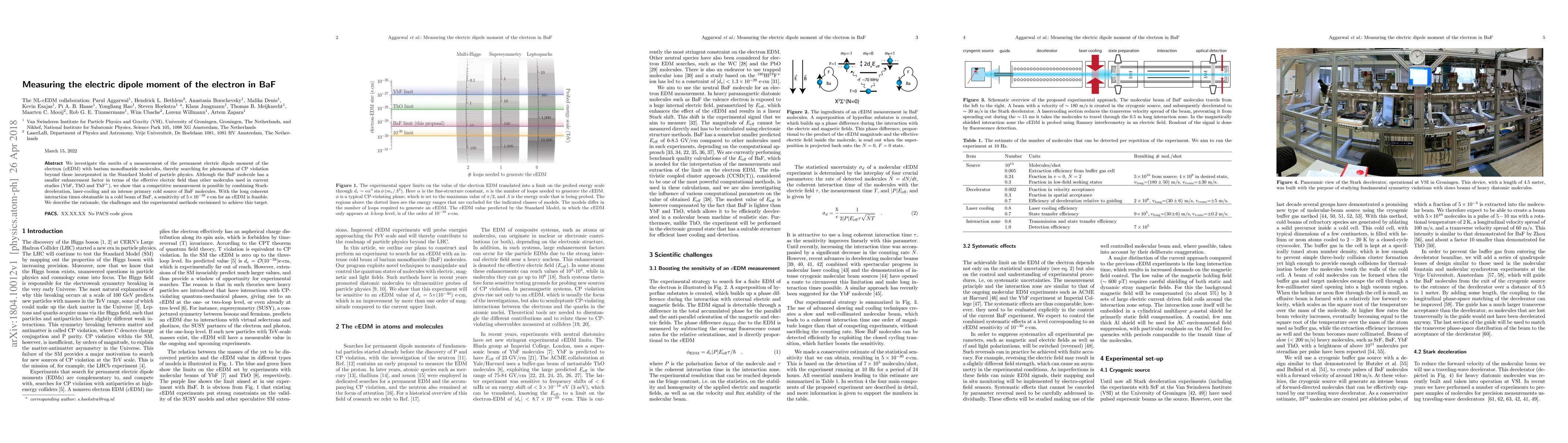 The research proposes using BaF molecules in a cryogenic source combined with Stark-deceleration, laser-cooling, and an intense primary cold source to measure the electron's electric dipole moment (eEDM). This setup aims to achieve a sensitivity of $5 imes10^{-30}$ e⋅cm for eEDM by leveraging long coherent interaction times in a cold beam of BaF.