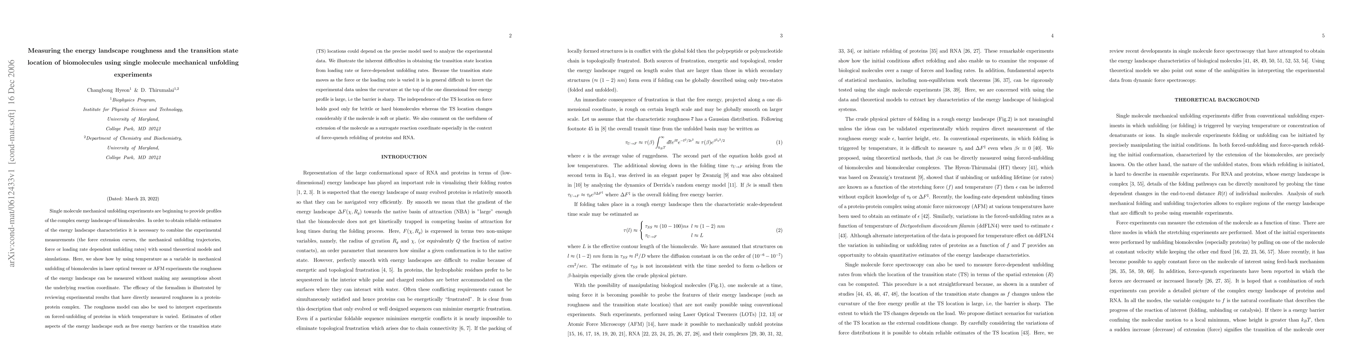 The paper presents a method for measuring energy landscape roughness using temperature variation in mechanical unfolding experiments, independent of reaction coordinate assumptions.