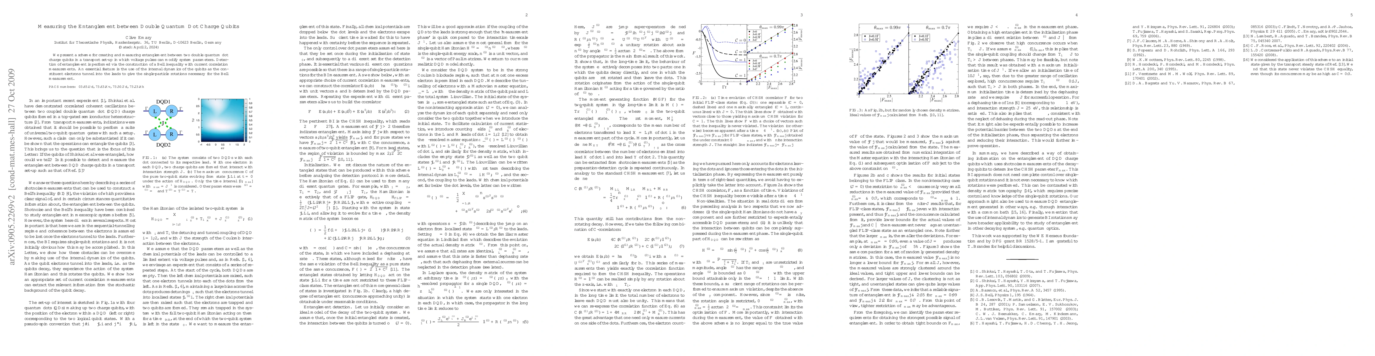 This paper proposes a method for creating and detecting entanglement between two double quantum dot charge qubits using voltage pulses to modify system parameters, and employs current correlation measurements to establish a Bell inequality for entanglement verification.