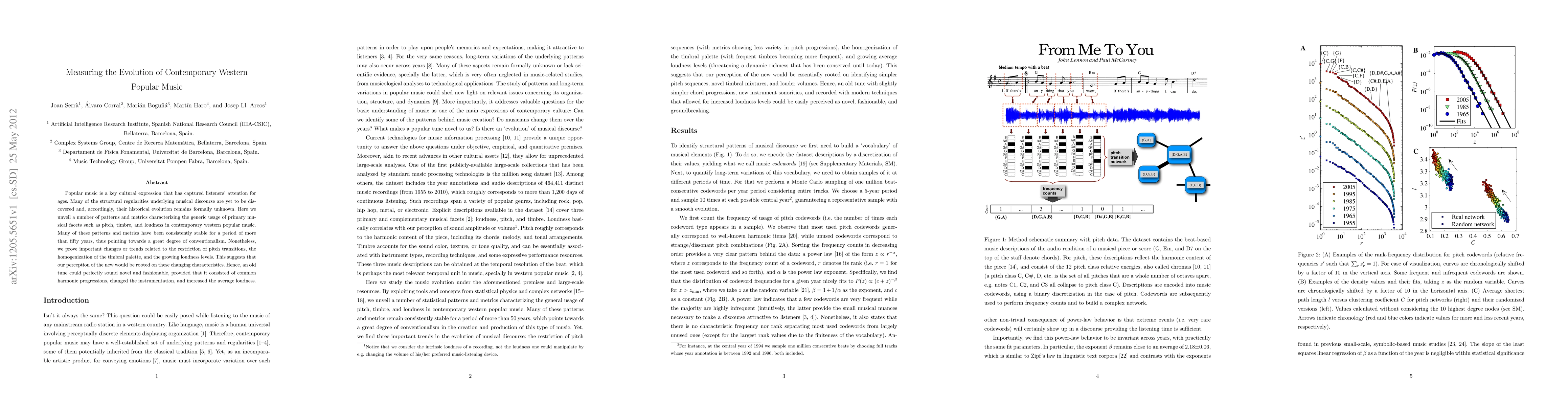 This paper explores the evolution of contemporary western popular music, identifying stable patterns in pitch, timbre, and loudness over fifty years. It highlights significant trends such as restricted pitch transitions, timbral homogenization, and increased loudness, suggesting that these changes are key to contemporary musical novelty.