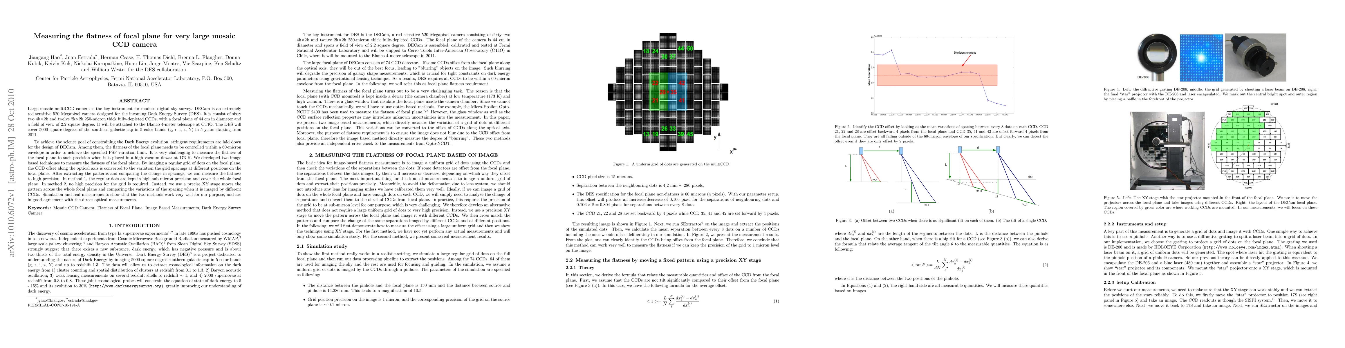 This paper presents two image-based techniques to measure the flatness of the focal plane of the DECam, a large mosaic CCD camera for the Dark Energy Survey. The methods convert CCD offset to grid spacing variations, achieving precision within a 60-micron envelope, crucial for the survey's science goals.