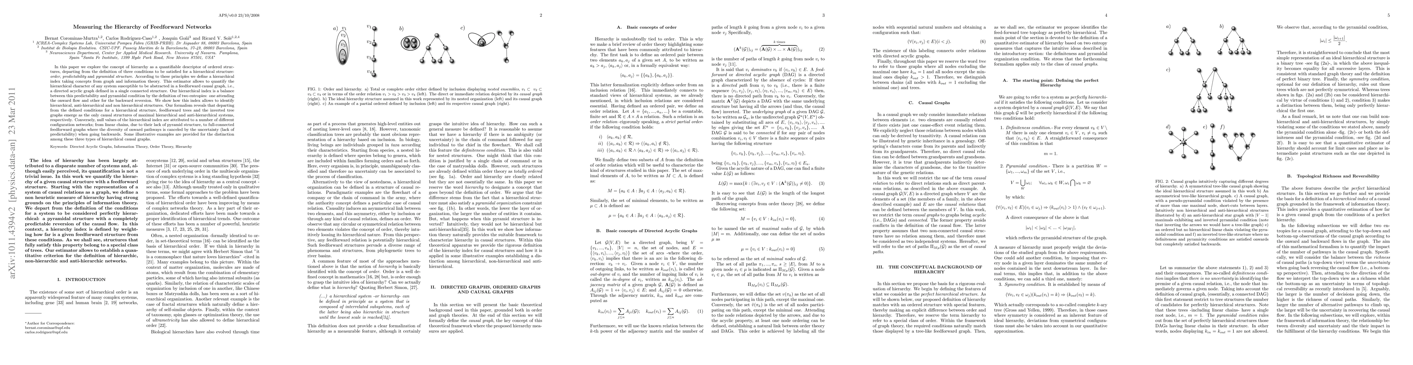 This paper proposes a quantifiable hierarchical index for feedforward networks based on order, predictability, and pyramidal structure, using graph and information theory. The index identifies hierarchical, anti-hierarchical, and non-hierarchical structures, revealing that maximal hierarchical systems are feedforward trees, while inverted tree graphs are anti-hierarchical.