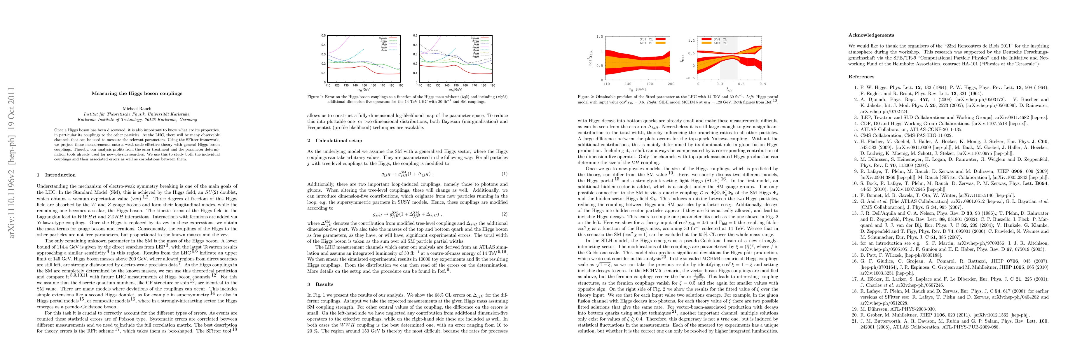 This paper investigates the measurement of Higgs boson couplings using the LHC and the SFitter framework, projecting these measurements onto a weak-scale effective theory. It analyzes individual coupling parameters, their uncertainties, and correlations, leveraging tools from new-physics searches.