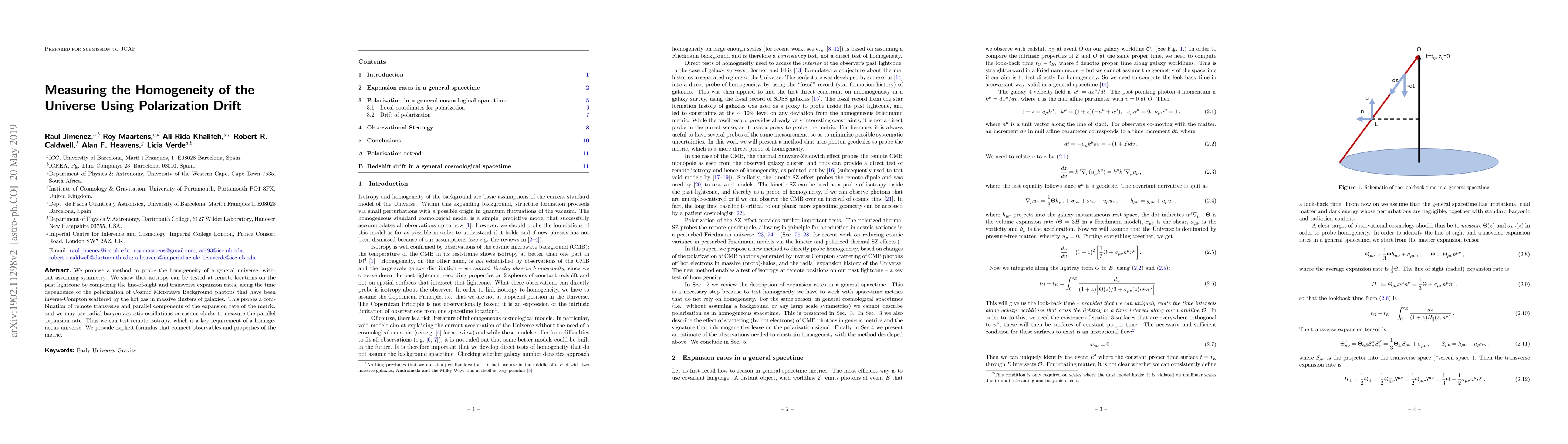 This research introduces a method to measure the homogeneity of the universe by comparing line-of-sight and transverse expansion rates using the polarization drift of Cosmic Microwave Background photons. It offers formulas linking observables to metric properties, enabling remote isotropy testing, crucial for a homogeneous universe assumption.