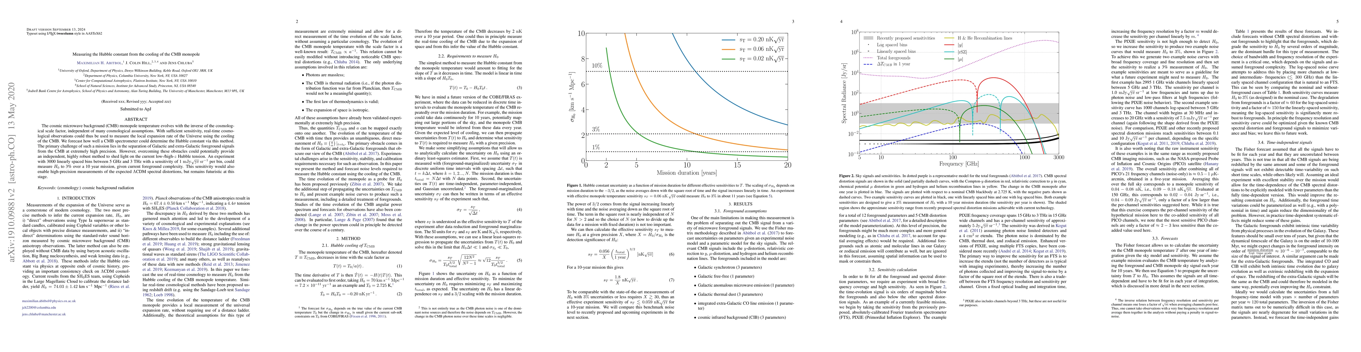A study proposes using the cooling of the cosmic microwave background monopole to measure the Hubble constant, a key parameter in cosmology, with unprecedented precision over a 10-year mission. The experiment aims to shed light on the long-standing 'Hubble tension' between different measurements of the universe's expansion rate.