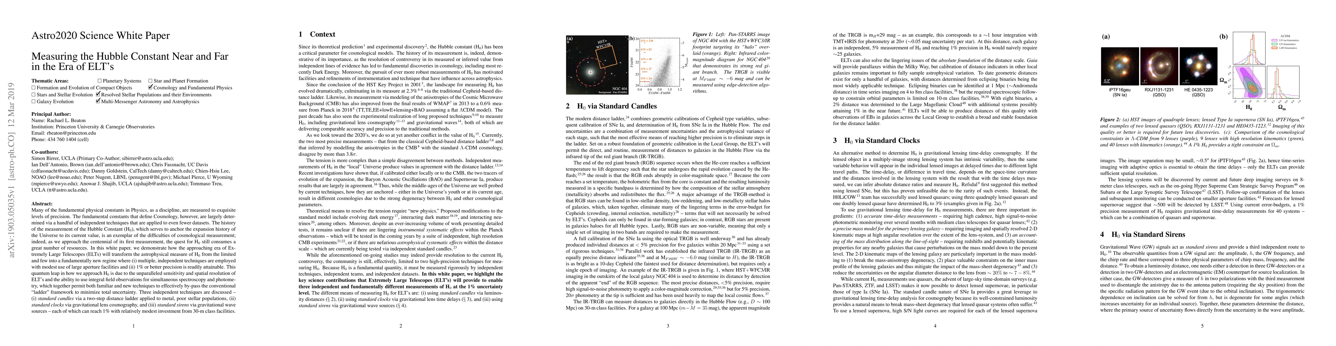 The paper discusses how Extremely Large Telescopes (ELTs) will revolutionize the measurement of the Hubble Constant (H0), aiming for 1% precision. This will be achieved through multiple independent techniques, including standard candles from metal-poor stars, gravitational lens cosmography, and gravitational wave sources, all benefiting from ELTs' unparalleled sensitivity and spatial resolution.