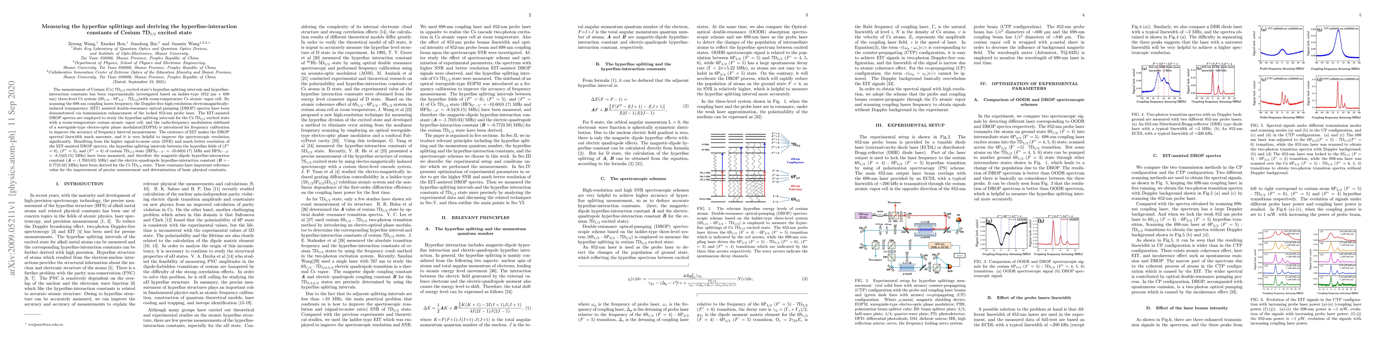 The measurement of Cesium (Cs) 7D5/2 excited state's hyperfine splitting intervals and hyperfine-interaction constants has been experimentally investigated based on ladder-type (852 nm + 698 nm) three-level Cs system (6S1/2 - 6P3/2 - 7D5/2) with room-temperature Cs atomic vapor cell. By scanning the 698-nm coupling laser's frequency, the Doppler-free high-resolution electromagnetically-induced transparency (EIT) assisted double-resonance optical pumping (DROP) spectra have been demonstrated via transmission enhancement of the locked 852-nm probe laser. The EIT-assisted DROP spectra are employed to study the hyperfine splitting intervals for the Cs 7D5/2 excited state with a room-temperature cesium atomic vapor cell, and the radio-frequency modulation sideband of a waveguide-type electro-optic phase modulator(EOPM) is introduced for frequency calibration to improve the accuracy of frequency interval measurement. The existence of EIT makes the DROP spectral linewidth much narrower, and it is very helpful to improve the spectroscopic resolution significantly. Benefiting from the higher signal-to-noise ratio (SNR) and much better resolution of the EIT-assisted DROP spectra, the hyperfine splitting intervals between the hyperfine folds of (F" = 6), (F" = 5), and (F" = 4) of cesium 7D5/2 state (HFS6"-5" = -10.60(0.17) MHz and HFS5"-4" = -8.54(0.15) MHz) have been measured, and therefore the magnetic-dipole hyperfine-interaction constant (A = -1.70(0.03) MHz) and the electric-quadrupole hyperfine-interaction constant (B = -0.77(0.58) MHz) have been derived for the Cs 7D5/2 state. These constants have important reference value for the improvement of precise measurement and determination of basic physical constants.