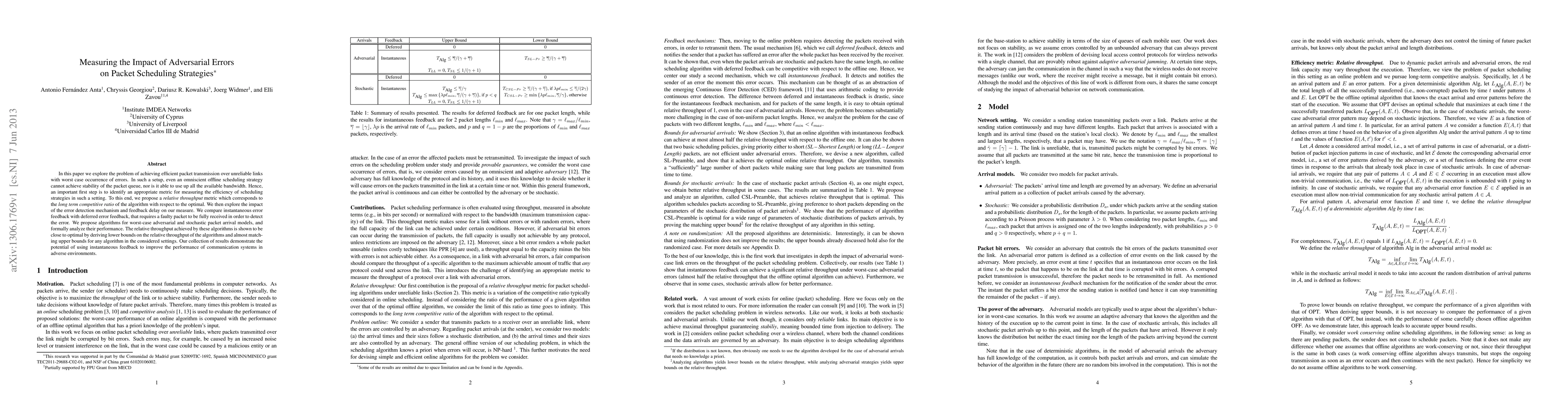 This paper proposes a relative throughput metric to evaluate packet scheduling strategies under unreliable links with adversarial errors, comparing instantaneous and deferred error feedback. It demonstrates that algorithms utilizing instantaneous feedback can achieve near-optimal performance, highlighting their potential to enhance communication systems in adverse conditions.