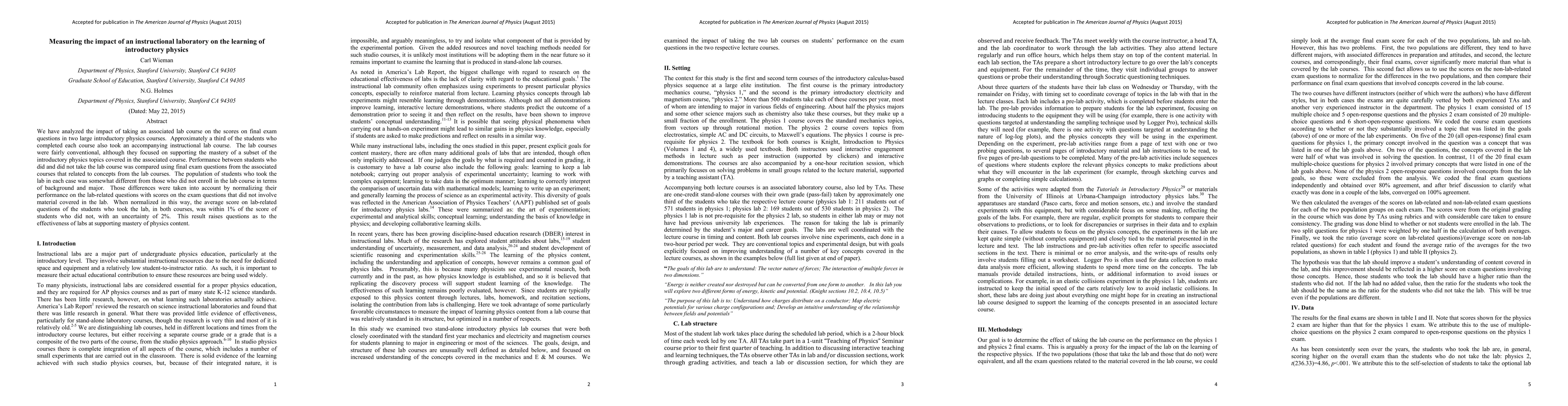 This study investigates the impact of an instructional lab course on the performance of students in large introductory physics courses, finding no significant difference in lab-related exam scores between students who took the lab and those who did not, suggesting limited effectiveness of conventional lab courses in enhancing physics mastery.