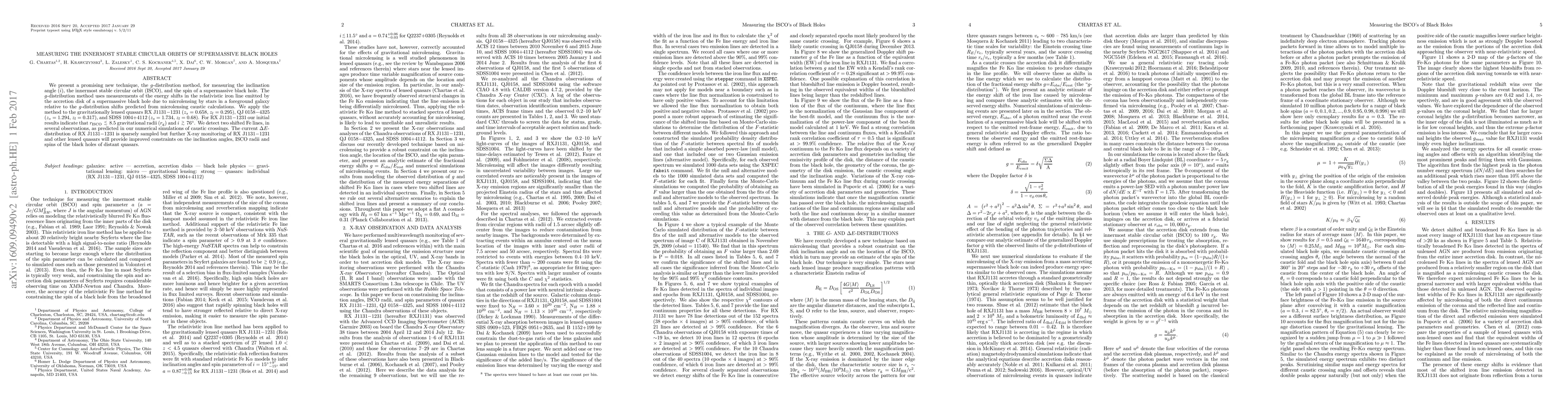 This paper introduces a novel g-distribution method to measure the inclination angle, innermost stable circular orbit (ISCO), and spin of supermassive black holes using relativistic iron line energy shifts from microlensing. Initial results for RX J1131-1231 suggest an ISCO radius less than 8.5 gravitational radii and an inclination angle greater than 76 degrees, with further X-ray monitoring to refine these measurements.