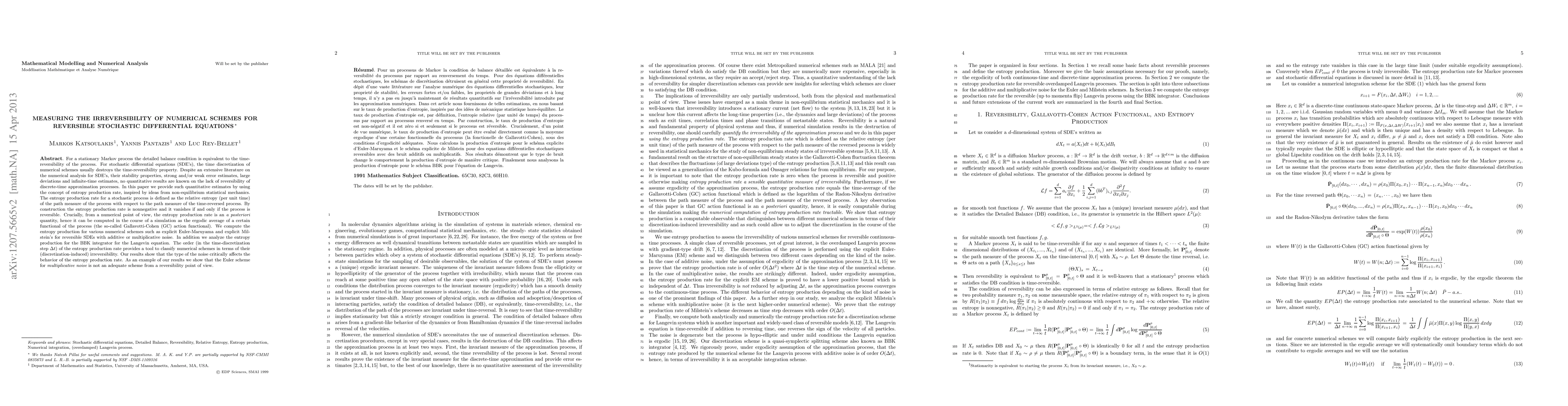 This paper quantifies the irreversibility of numerical schemes for discretizing reversible stochastic differential equations (SDEs) using entropy production rate. It demonstrates that entropy production, an a posteriori observable, effectively distinguishes between different numerical schemes and reveals the impact of noise type on discretization-induced irreversibility.