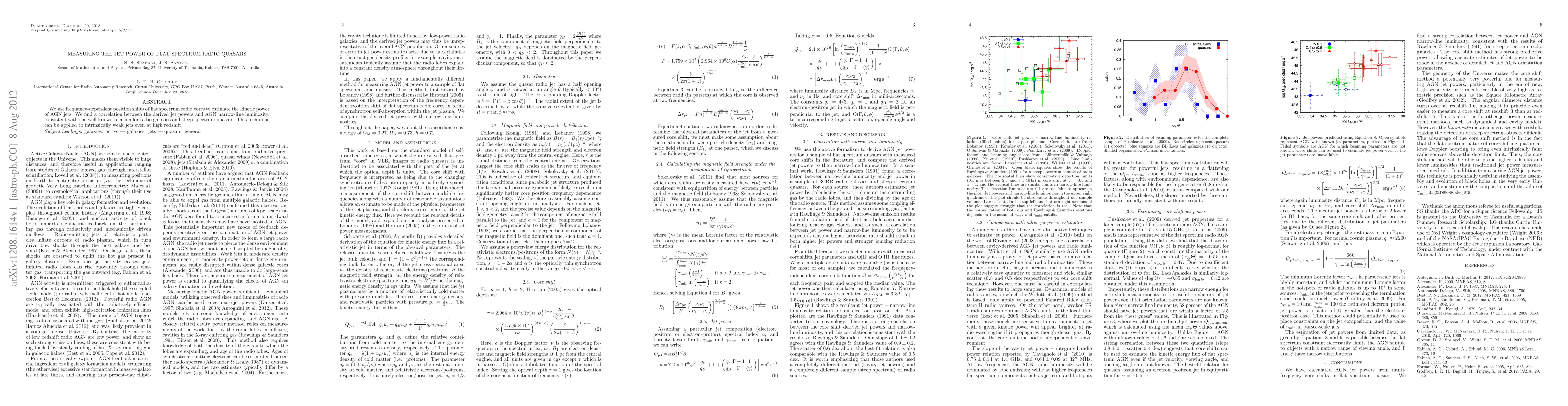 We use frequency-dependent position shifts of flat spectrum radio cores to estimate the kinetic power of AGN jets. We find a correlation between the derived jet powers and AGN narrow-line luminosity, consistent with the well-known relation for radio galaxies and steep spectrum quasars. This technique can be applied to intrinsically weak jets even at high redshift.