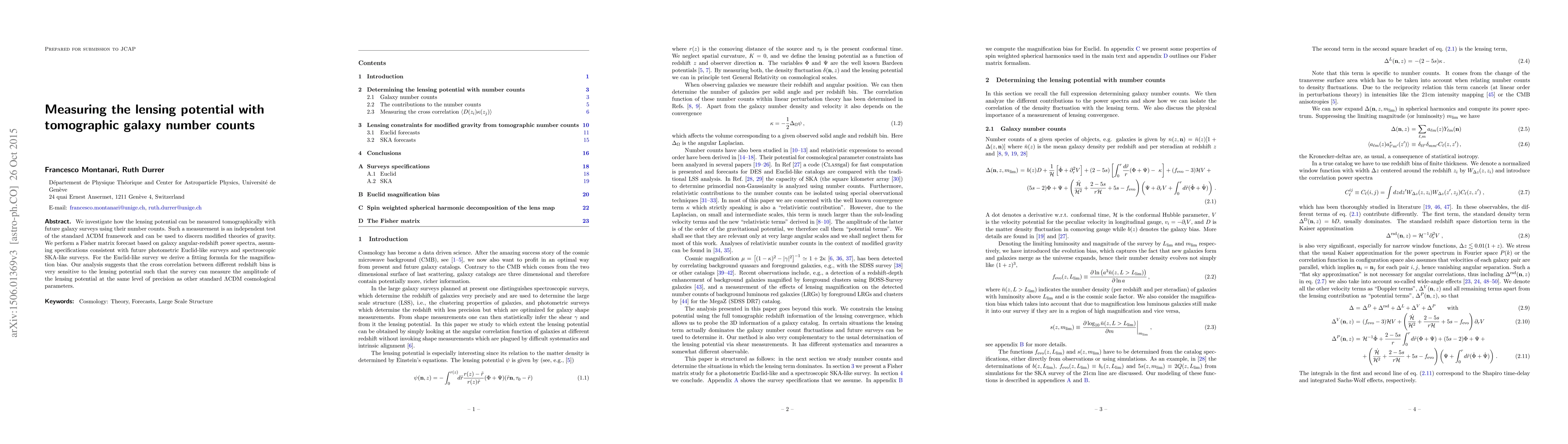 This paper explores the measurement of the lensing potential through tomographic galaxy number counts in future surveys, providing an independent test of the standard $\Lambda$CDM model and potential insights into modified gravity theories. The study forecasts precision using Fisher matrices and finds that cross-correlations across different redshift bins can measure the lensing potential with high accuracy comparable to other cosmological parameters.