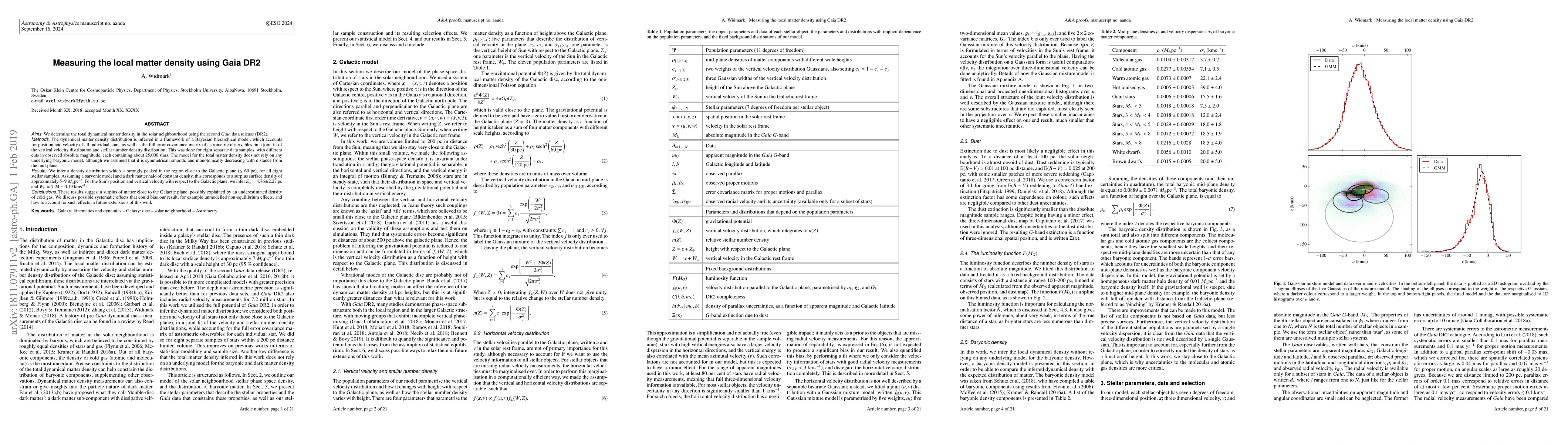 This paper uses Gaia DR2 data to determine the dynamical matter density in the solar neighborhood through a Bayesian hierarchical model, finding a density peak close to the Galactic plane. The results suggest a surplus surface density of 5--9 M$_\odot$/pc$^2$, indicating possible underestimation of cold gas density, while discussing potential systematic biases for future improvements.