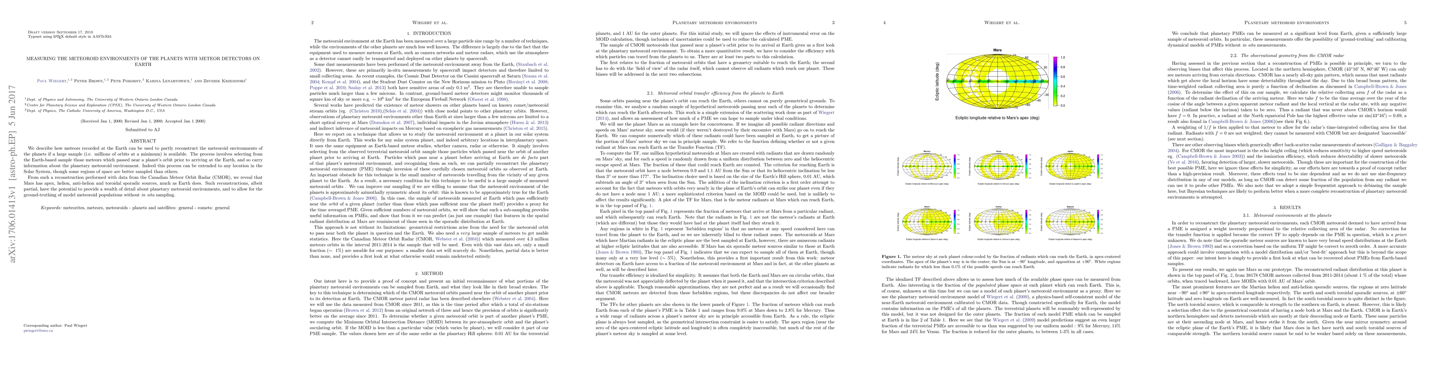 We describe how meteors recorded at the Earth can be used to partly reconstruct the meteoroid environments of the planets if a large sample (i.e. millions of orbits at a minimum) is available. The process involves selecting from the Earth-based sample those meteors which passed near a planet's orbit prior to arriving at the Earth, and so carry information about the planetary meteoroid environment. Indeed this process can be extended to any location in the Solar System, though some regions of space are better sampled than others. From such a reconstruction performed with data from the Canadian Meteor Orbit Radar (CMOR), we reveal that Mars has apex, helion, anti-helion and toroidal sporadic sources, much as Earth does. Such reconstructions, albeit partial, have the potential to provide a wealth of detail about planetary meteoroid environments, and to allow for the ground-truthing of model meteoroid populations without in situ sampling.