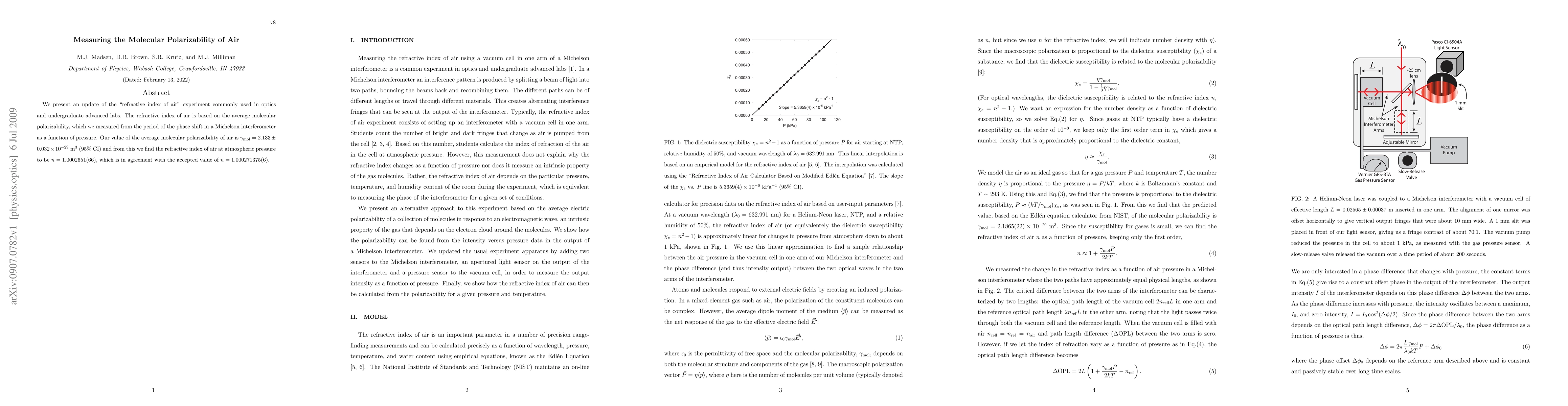 Researchers measured air's molecular polarizability to determine its refractive index at atmospheric pressure, finding a value in agreement with the accepted value of 1.000271375.