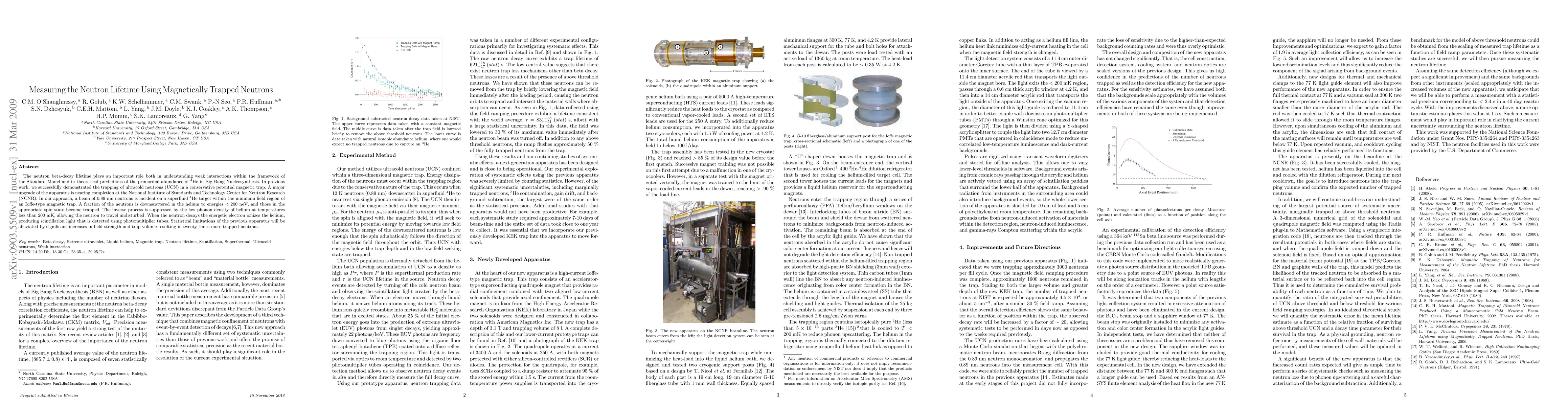 The research employs ultracold neutrons (UCN) confined within a three-dimensional magnetic trap, utilizing energy dissipation in superfluid 4He near the minimum field region of an Ioffe-type magnetic trap. Neutrons downscatter to energies below 200 neV and become trapped in the low phonon density helium at temperatures below 200 mK, allowing detection of neutron decay events via scintillation light produced by ionizing electrons.