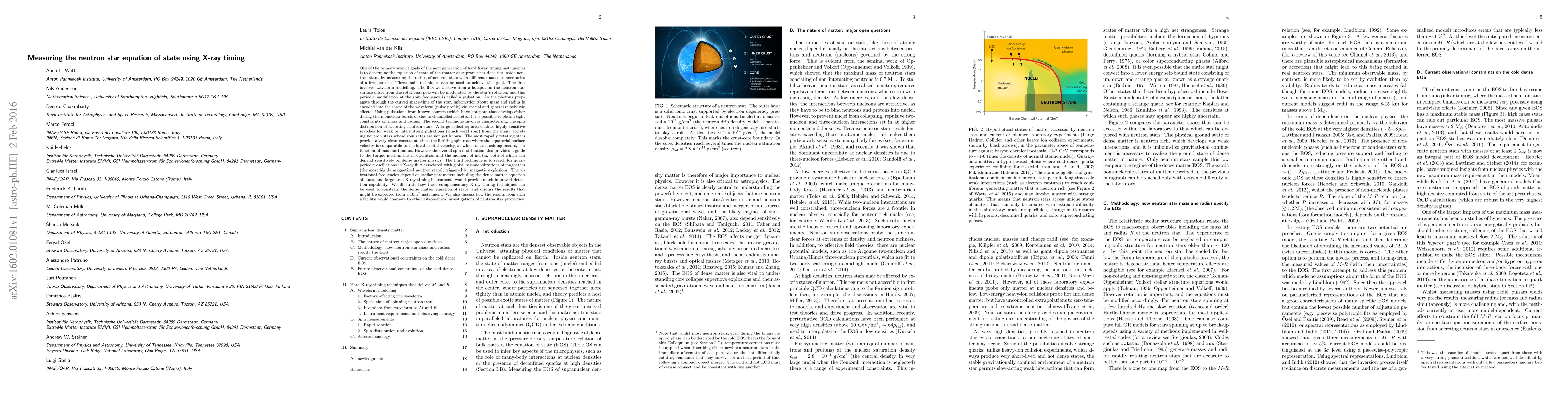This paper explores the use of X-ray timing techniques to measure the neutron star equation of state, focusing on three methods: waveform modelling of pulsars, spin distribution analysis of accreting neutron stars, and quasi-periodic oscillations in magnetars. It discusses how these techniques can provide insights into the dense matter physics within neutron stars and compares the expected results from a next-generation X-ray instrument.