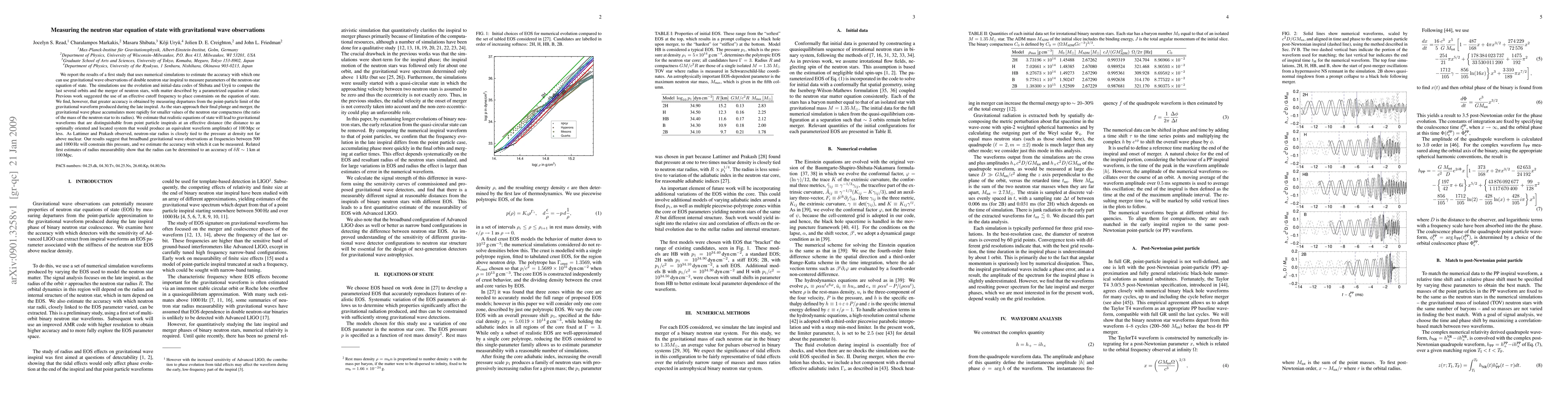 This study uses numerical simulations to determine how gravitational wave observations of merging neutron stars can measure the neutron star equation of state. It finds that greater accuracy comes from measuring waveform departures from the point-particle limit, suggesting that gravitational waves can constrain neutron star radii to an accuracy of ~1 km at 100 Mpc.