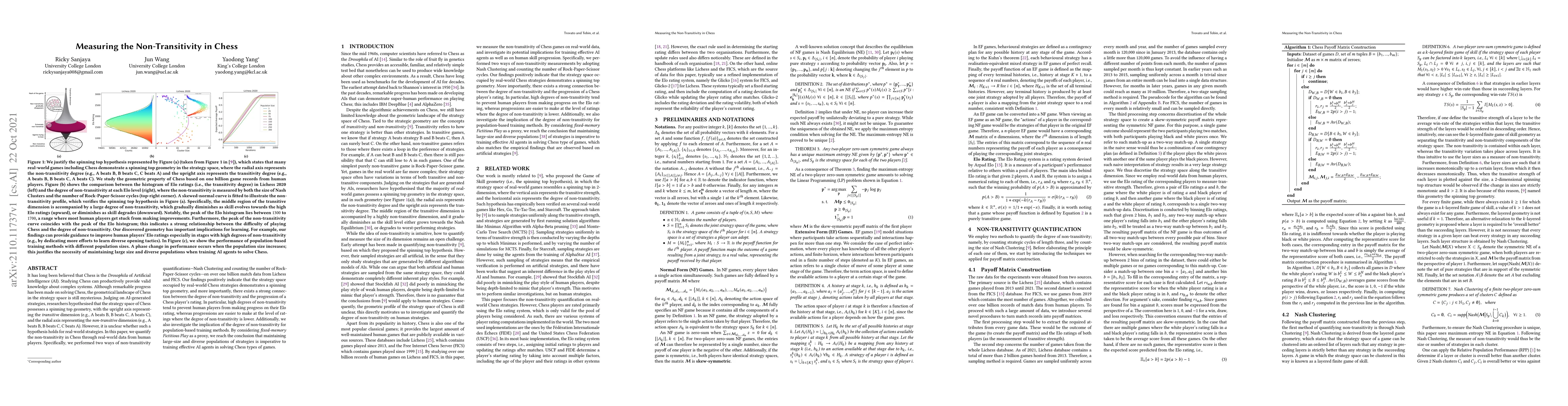 This paper quantifies non-transitivity in Chess using real-world data from human players, finding that Chess strategies exhibit a "spinning top" geometry. It shows a strong link between non-transitivity and player rating progression, suggesting that lower non-transitivity facilitates rating improvement.