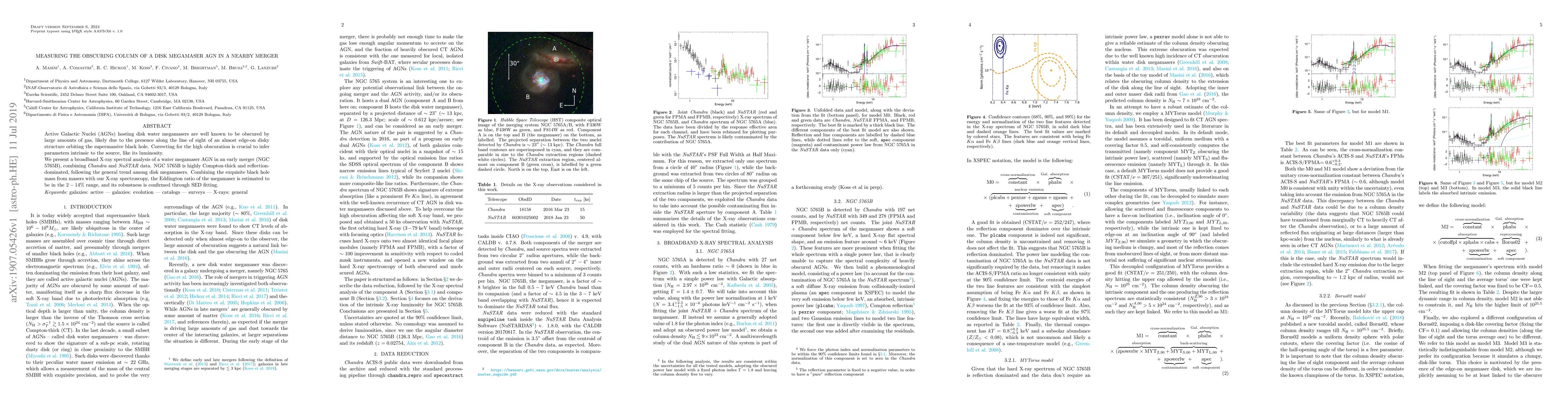Active Galactic Nuclei (AGNs) hosting disk water megamasers are well known to be obscured by large amounts of gas, likely due to the presence along the line of sight of an almost edge-on disky structure orbiting the supermassive black hole. Correcting for the high obscuration is crucial to infer parameters intrinsic to the source, like its luminosity. We present a broadband X-ray spectral analysis of a water megamaser AGN in an early merger (NGC 5765B), combining Chandra and NuSTAR data. NGC 5765B is highly Compton-thick and reflection-dominated, following the general trend among disk megamasers. Combining the exquisite black hole mass from masers with our X-ray spectroscopy, the Eddington ratio of the megamaser is estimated to be in the $2-14\%$ range, and its robustness is confirmed through SED fitting.