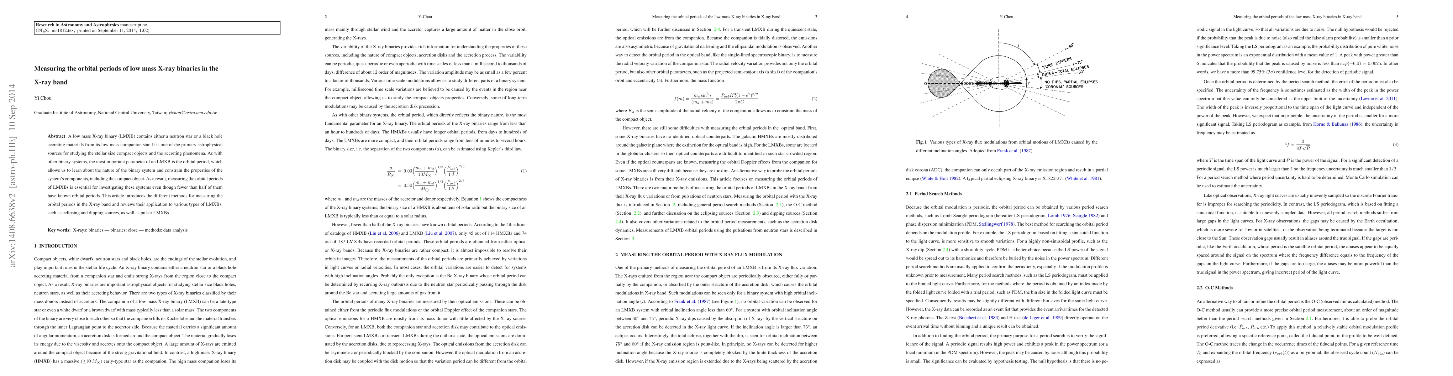 A low mass X-ray binary (LMXB) contains either a neutron star or a black hole accreting materials from its low mass companion star. It is one of the primary astrophysical sources for studying the stellar size compact objects and the accreting phenomena. As with other binary systems, the most important parameter of an LMXB is the orbital period, which allows us to learn about the nature of the binary system and constrain the properties of the system's components, including the compact object. As a result, measuring the orbital periods of LMXBs is essential for investigating these systems even though fewer than half of them have known orbital periods. This article introduces the different methods for measuring the orbital periods in the X-ray band and reviews their application to various types of LMXBs, such as eclipsing and dipping sources, as well as pulsar LMXBs.