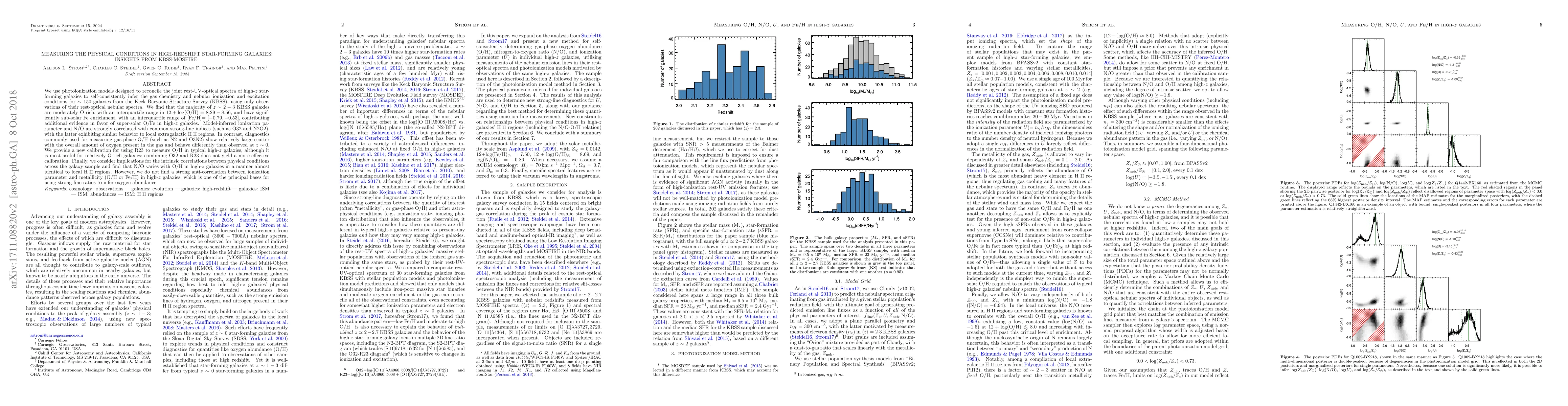 This study uses photoionization models to analyze the gas chemistry and ionization conditions in ~150 high-redshift star-forming galaxies from the KBSS, finding that they are moderately O-rich with sub-solar Fe enrichment, and provides a new calibration for measuring O/H using R23, noting that N/O correlates with O/H similarly to local HII regions but lacks a strong anti-correlation between ionization parameter and metallicity.