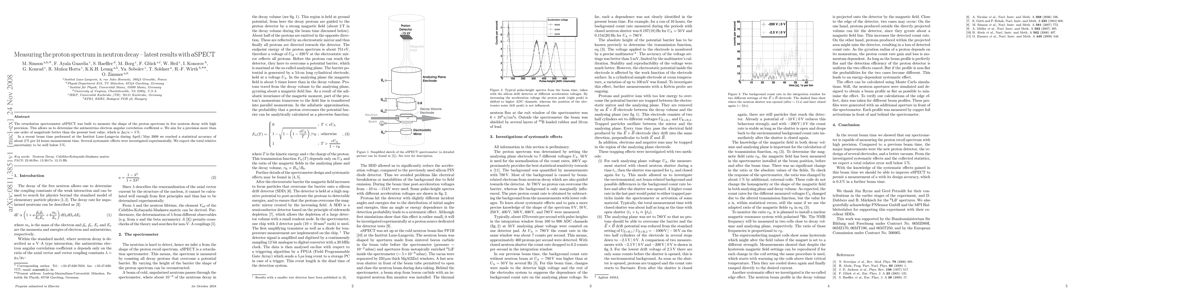 Researchers used aSPECT to measure the proton spectrum in neutron decay with high precision, aiming for better than one order of magnitude improvement over current values, achieving a 2% accuracy after a single measurement period.