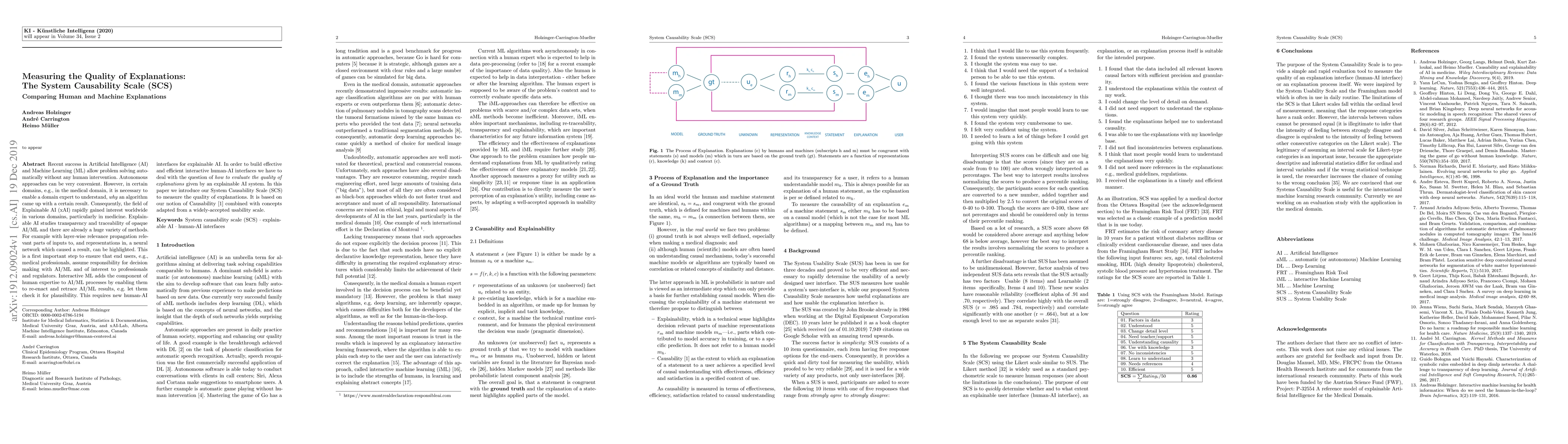The paper introduces the System Causability Scale (SCS) to measure the quality of explanations provided by explainable AI systems, based on the concept of Causability and adapted from the System Usability Scale (SUS).