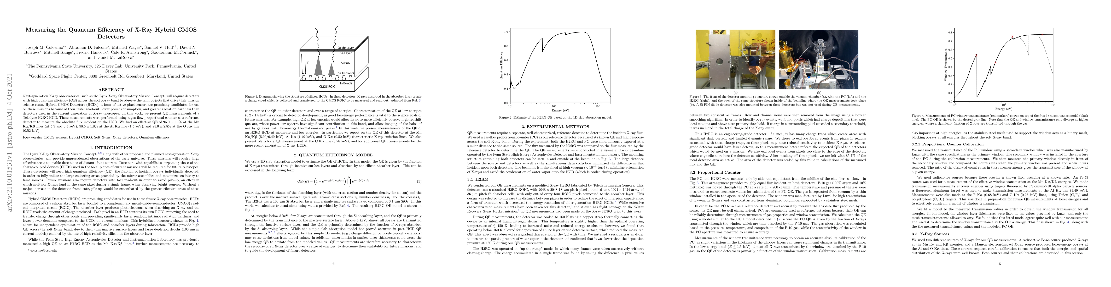 This study measures the quantum efficiency of a Teledyne H2RG Hybrid CMOS Detector (HCD) for next-generation X-ray observatories, finding high QE values of 95.0% ± 1.1% at 5.9 and 6.5 keV, 98.5% ± 1.8% at 1.5 keV, and 85.0% ± 2.8% at 0.52 keV, indicating its potential for use in future X-ray missions.