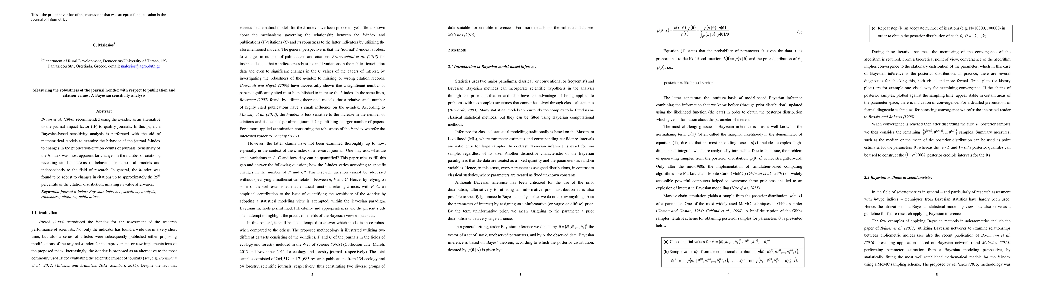 This paper conducts a Bayesian sensitivity analysis to evaluate the robustness of the journal h-index against changes in publication and citation values. The findings indicate that the h-index is generally robust to citation changes up to the 25th percentile, after which it begins to inflate.