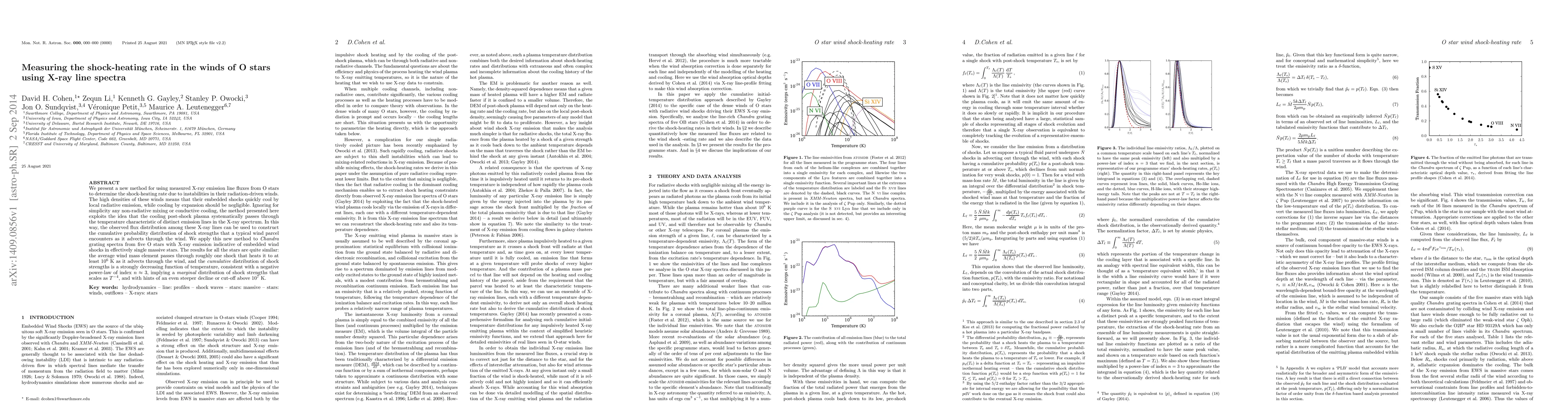 We present a new method for using measured X-ray emission line fluxes from O stars to determine the shock-heating rate due to instabilities in their radiation-driven winds. The high densities of these winds means that their embedded shocks quickly cool by local radiative emission, while cooling by expansion should be negligible. Ignoring for simplicity any non-radiative mixing or conductive cooling, the method presented here exploits the idea that the cooling post-shock plasma systematically passes through the temperature characteristic of distinct emission lines in the X-ray spectrum. In this way, the observed flux distribution among these X-ray lines can be used to construct the cumulative probability distribution of shock strengths that a typical wind parcel encounters as it advects through the wind. We apply this new method (Gayley 2014) to Chandra grating spectra from five O stars with X-ray emission indicative of embedded wind shocks in effectively single massive stars. Correcting for wind absorption of the X-ray line emission is a crucial component of our analysis, and we use wind optical depth values derived from X-ray line-profile fitting (Cohen et al. 2014) in order to make that correction. The shock-heating rate results we derive for all the stars are quite similar: the average wind mass element passes through roughly one shock that heats it to at least $10^6$ K as it advects through the wind, and the cumulative distribution of shock strengths is a strongly decreasing function of temperature, consistent with a negative power-law of index $n \approx 3$, implying a marginal distribution of shock strengths that scales as $T^{-4}$, and with hints of an even steeper decline or cut-off above $10^7$ K.