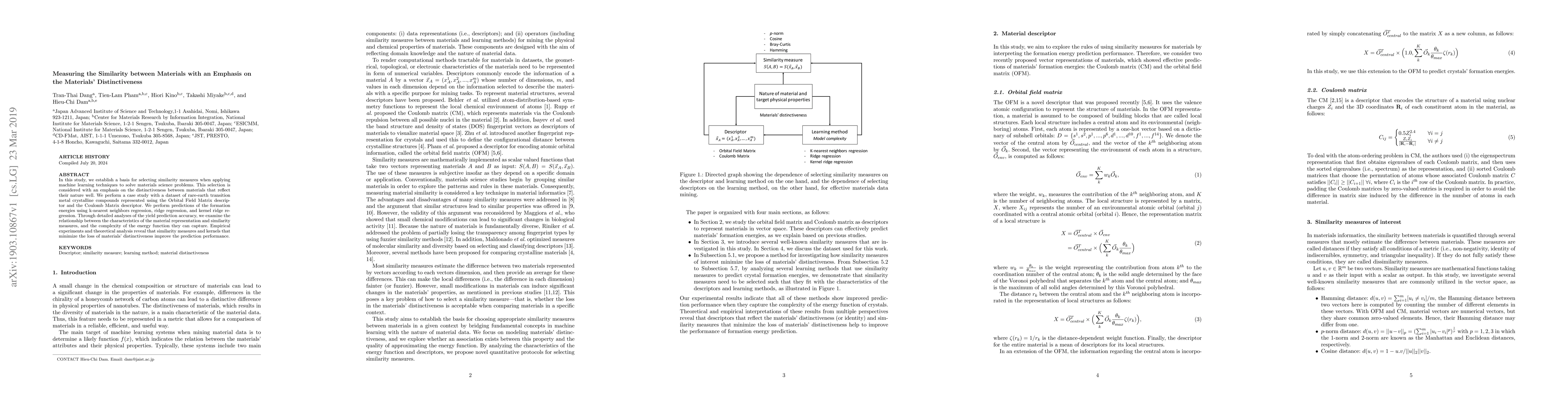 This study evaluates various similarity measures for machine learning applications in materials science, focusing on preserving materials' distinctiveness. Experiments using rare-earth transition metal compounds show that measures that maintain distinctiveness enhance prediction accuracy for formation energies.
