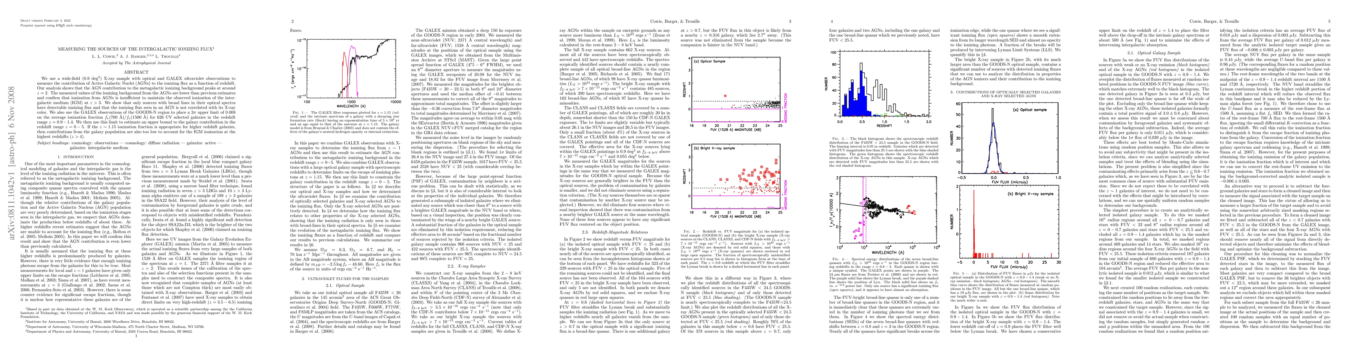This paper measures the contribution of Active Galactic Nuclei (AGNs) to the intergalactic ionizing flux, finding that AGNs peak at z=2 but are insufficient to maintain high-redshift (z>3) IGM ionization. It also sets an upper limit on the ionization fraction from UV-selected galaxies, concluding that galaxies similarly cannot account for IGM ionization at z>4.