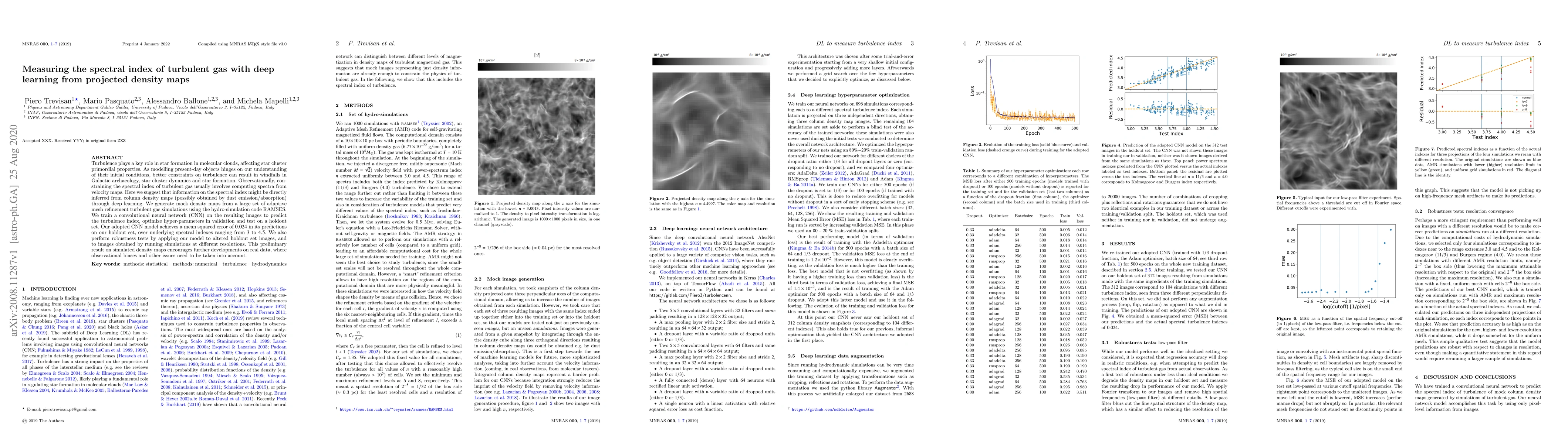 Turbulence plays a key role in star formation in molecular clouds, affecting star cluster primordial properties. As modelling present-day objects hinges on our understanding of their initial conditions, better constraints on turbulence can result in windfalls in Galactic archaeology, star cluster dynamics and star formation. Observationally, constraining the spectral index of turbulent gas usually involves computing spectra from velocity maps. Here we suggest that information on the spectral index might be directly inferred from column density maps (possibly obtained by dust emission/absorption) through deep learning. We generate mock density maps from a large set of adaptive mesh refinement turbulent gas simulations using the hydro-simulation code RAMSES. We train a convolutional neural network (CNN) on the resulting images to predict the turbulence index, optimize hyper-parameters in validation and test on a holdout set. Our adopted CNN model achieves a mean squared error of 0.024 in its predictions on our holdout set, over underlying spectral indexes ranging from 3 to 4.5. We also perform robustness tests by applying our model to altered holdout set images, and to images obtained by running simulations at different resolutions. This preliminary result on simulated density maps encourages further developments on real data, where observational biases and other issues need to be taken into account.