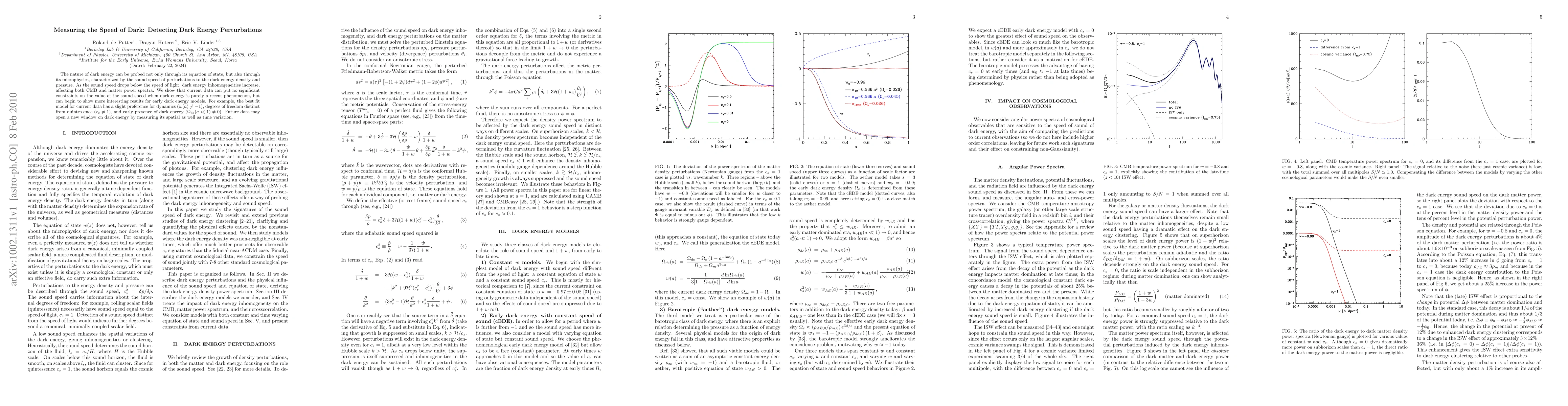 This paper explores the potential of detecting perturbations in dark energy through its sound speed, which could reveal its microphysics. Current data does not significantly constrain the sound speed for recent dark energy models but hints at early dark energy presence and dynamics differing from quintessence. Future observations may provide deeper insights into dark energy's spatial and temporal variations.