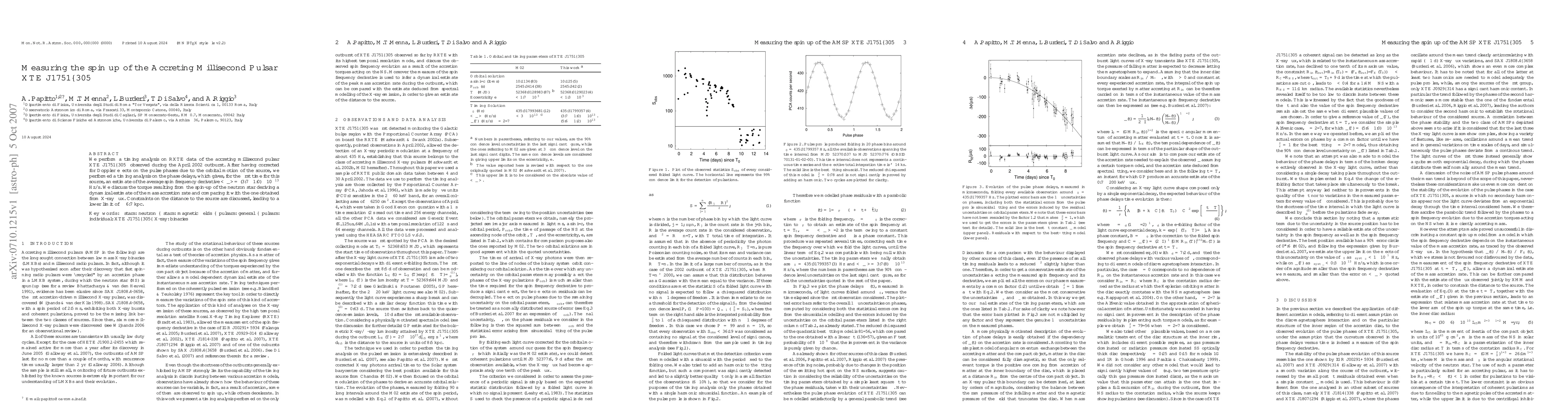 Researchers measured the spin-up of XTE J1751-305, a millisecond pulsar, using RXTE data from 2002, finding an average spin frequency derivative of (3.7 +/- 1.0)E-13 Hz/s.