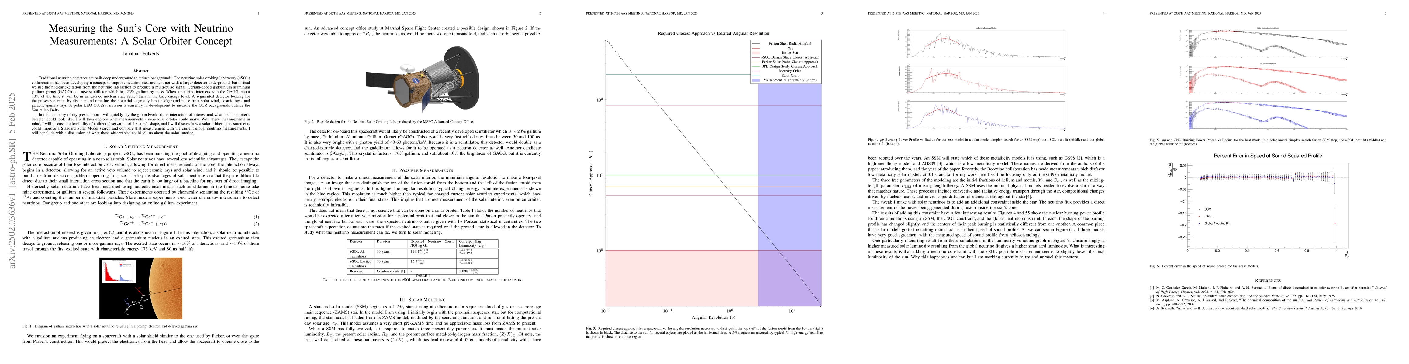 Traditional neutrino detectors are built deep underground to reduce backgrounds. The neutrino solar orbiting laboratory ($\nu$SOL) collaboration has been developing a concept to improve neutrino measurement not with a larger detector underground, but instead we use the nuclear excitation from the neutrino interaction to produce a multi-pulse signal. Cerium-doped gadolinium aluminum gallium garnet (GAGG) is a new scintillator which has 23\% gallium by mass. When a neutrino interacts with the GAGG, about 10\% of the time it will be in an excited nuclear state rather than in the base energy level. A segmented detector looking for the pulses separated by distance and time has the potential to greatly limit background noise from solar wind, cosmic rays, and galactic gamma rays. A polar LEO CubeSat mission is currently in development to measure the GCR backgrounds outside the Van Allen Belts. In this summary of my presentation I will quickly lay the groundwork of the interaction of interest and what a solar orbiter's detector could look like. I will then explore what measurements a near-solar orbiter could make. With these measurements in mind, I will discuss the feasibility of a direct observation of the core's shape, and I will discuss how a solar orbiter's measurements could improve a Standard Solar Model search and compare that measurement with the current global neutrino measurements. I will conclude with a discussion of what these observables could tell us about the solar interior.