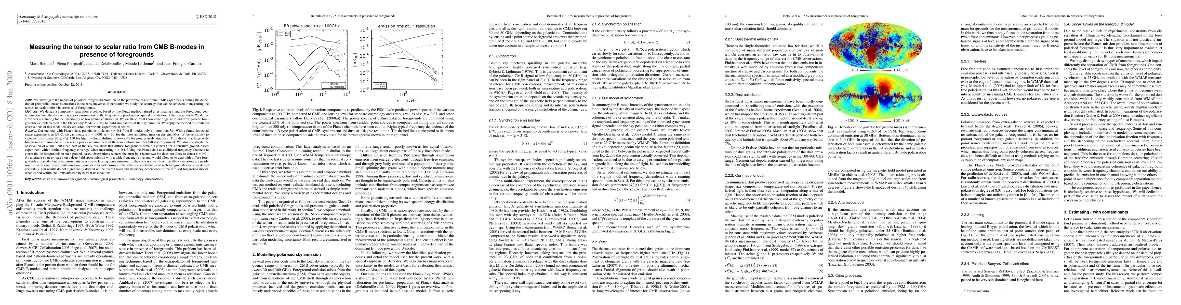 Abreg: We investigate the impact of polarized foreground emission on the performances of future CMB experiments in measuring the tensor-to-scalar ratio r. We design a component separation pipeline, based on the Smica method, aimed at estimating r and the foreground contamination from the data with no prior assumption on the frequency dependence or spatial distribution of the foregrounds. We derive error bars accounting for the uncertainty on foreground contribution. We use the current knowledge of galactic and extra-galactic foregrounds as implemented in the Planck Sky Model (PSM), to build simulations of the sky emission for various experimental setups. Our method, permits us to detect r = 0.1 at more than 3 sigma from B-modes only with Planck data, and r = 0.001 at 6 sigma for the most ambitious designs of the future EPIC probe. We find that all-sky experiments permit a proper measurement of the reionization bump despite the large scale foreground emission and are nearly insensitive to contamination from point sources and lensing if their statistical contribution can be modelled accurately. Investigating the observation of a small but clean part of the sky, we show that diffuse foregrounds remain a concern for a sensitive ground-based experiment with a limited frequency coverage when measuring r < 0.1, but are dealt with efficiently by a deep field space mission which is in return quite sensitive to lensing. Our results do not significantly depend on the overall level and frequency dependence of the diffused foreground model.