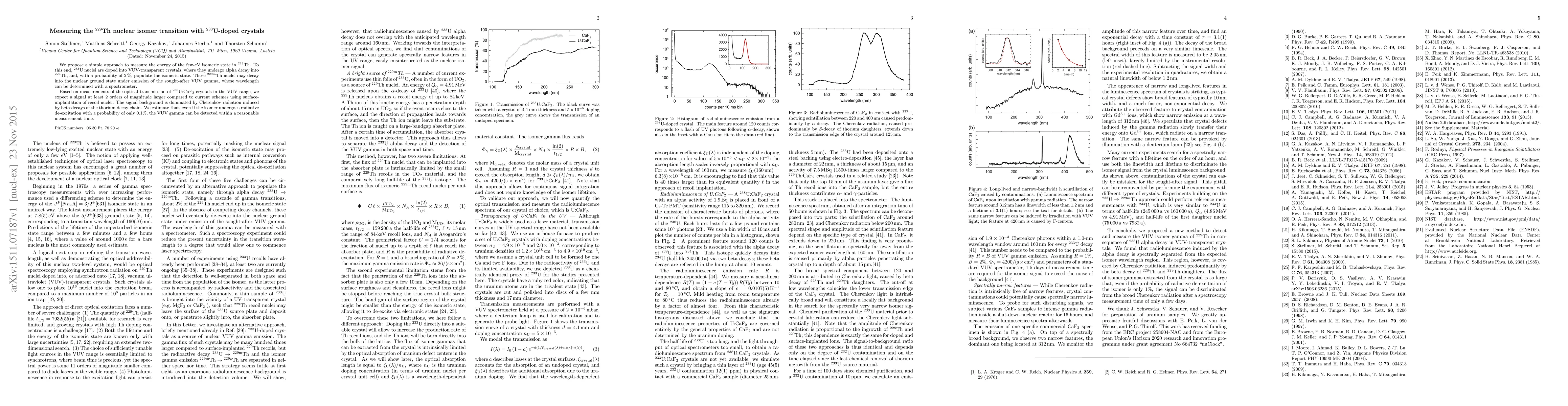 This paper proposes a method to measure the energy of the Th-229 nuclear isomer using U-233 doped VUV-transparent crystals, predicting a significantly larger signal than current techniques. The approach involves detecting VUV gamma emissions from the decay of Th-229m, with a background dominated by beta decay Cherenkov radiation.