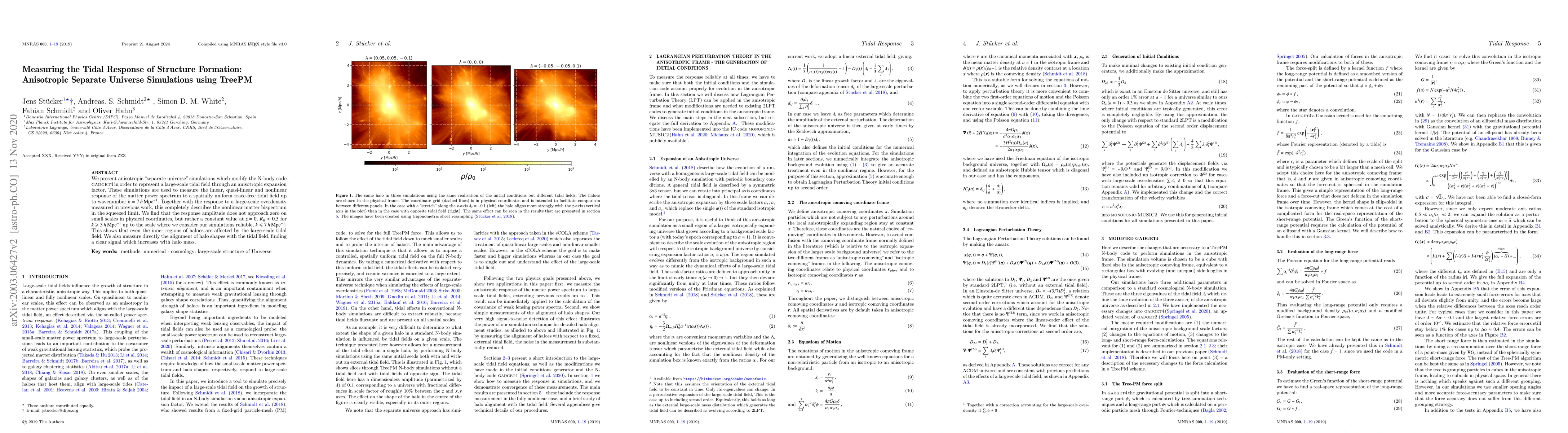 This paper uses anisotropic "separate universe" simulations to measure the tidal response in structure formation, finding a constant response amplitude of $R_K \approx 0.5$ for large-scale tidal fields affecting even inner regions of haloes. It also observes a clear alignment of halo shapes with the tidal field, increasing with halo mass.