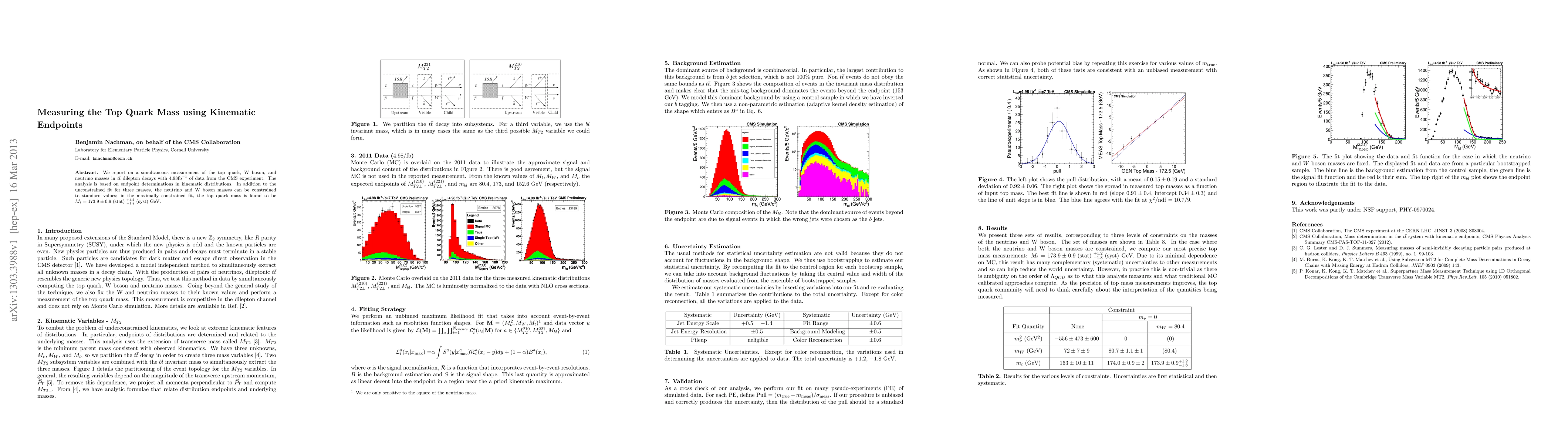 We report on a simultaneous measurement of the top quark, W boson, and neutrino masses in $t\bar{t}$ dilepton decays with $4.98 \mathrm{fb}^{-1}$ of data from the CMS experiment. The analysis is based on endpoint determinations in kinematic distributions. In addition to the unconstrained fit for three masses, the neutrino and W boson masses can be constrained to standard values; in the maximally constrained fit, the top quark mass is found to be $M_t = 173.9 \pm 0.9 (stat) {}^{+1.2}_{-1.8} (syst) $ GeV.