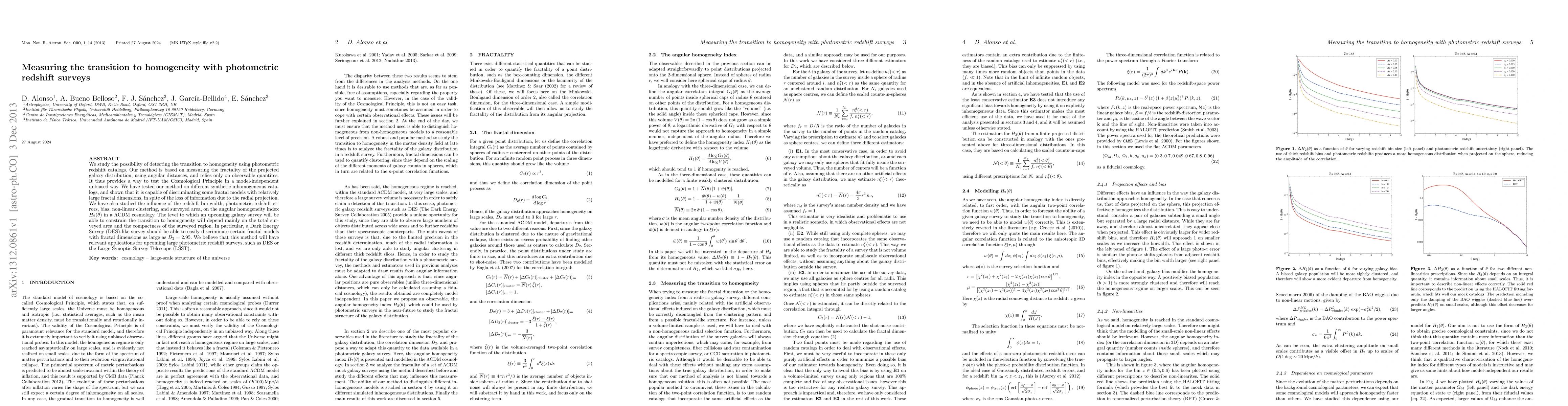 This paper proposes a method to detect the transition to homogeneity in the universe using photometric redshift surveys by measuring the fractality of galaxy distributions. The method is model-independent and can effectively discriminate certain fractal models, with the ability of surveys like the Dark Energy Survey (DES) to constrain this transition depending primarily on surveyed area and region compactness.