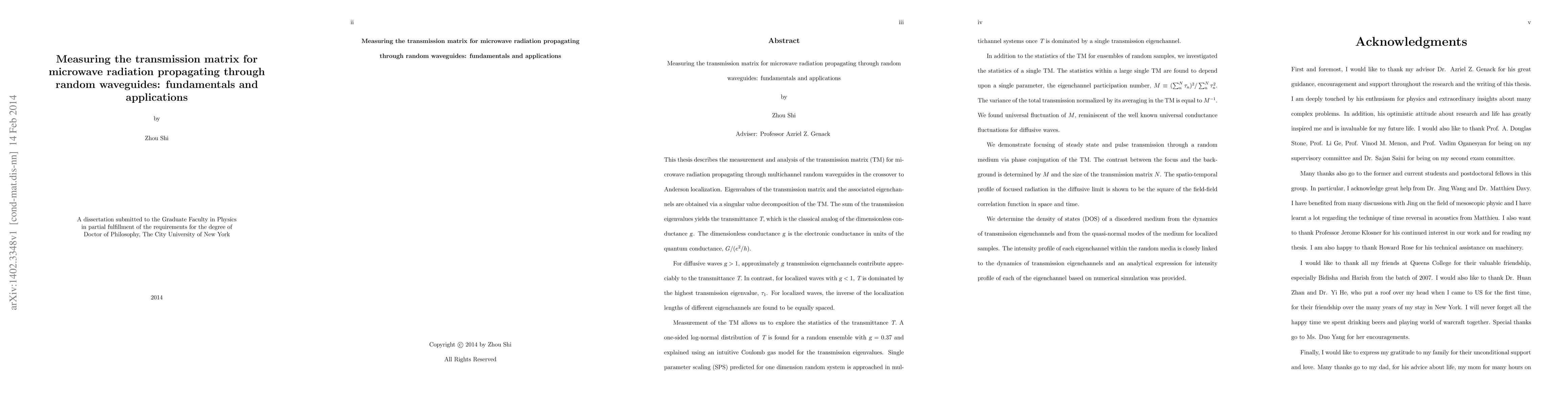 This thesis describes the measurement and analysis of the transmission matrix (TM) for microwave radiation propagating through multichannel random waveguides in the crossover to Anderson localization. Eigenvalues of the transmission matrix and the associated eigenchannels are obtained via a singular value decomposition of the TM. The sum of the transmission eigenvalues yields the transmittance $\it T$, which is the classical analog of the dimensionless conductance $\textsl g$. The dimensionless conductance $\textsl g$ is the electronic conductance in units of the quantum conductance, $G/(e^2/h)$.