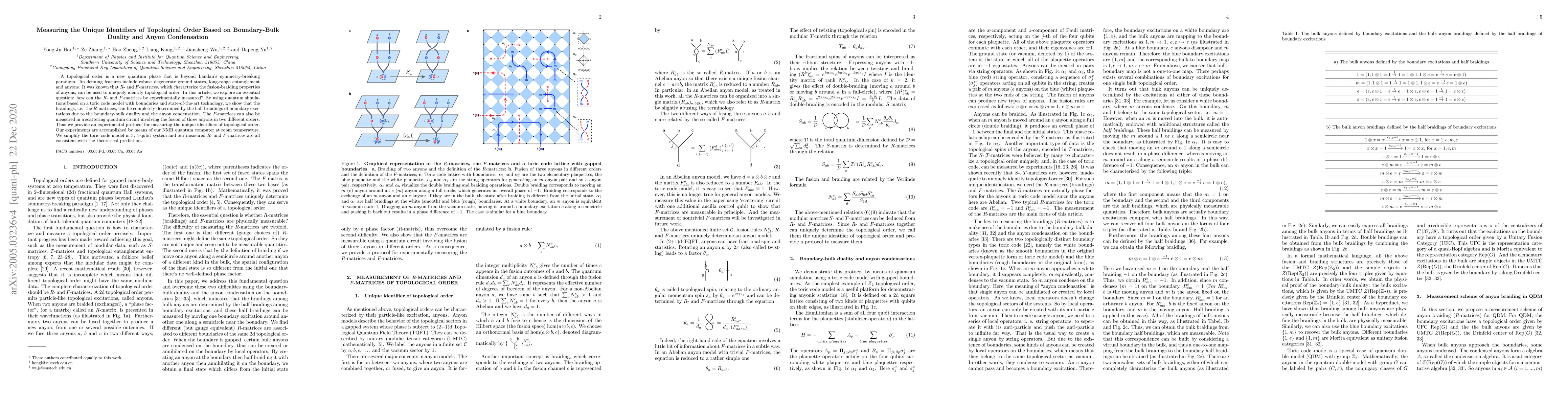 Researchers developed an experimental protocol to measure unique identifiers of topological order using quantum simulations and state-of-the-art technology. They successfully determined $R$-matrices using boundary excitations and measured $F$-matrices through a scattering quantum circuit.