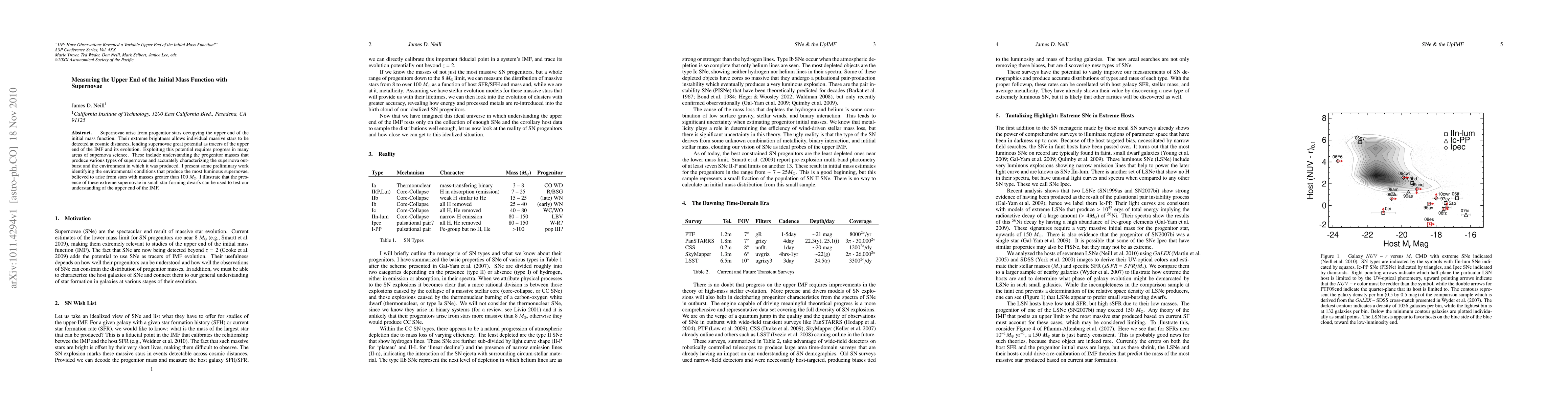 This paper explores the use of supernovae as tracers for the upper end of the initial mass function (IMF), focusing on the environmental conditions that produce the most luminous supernovae from massive stars. It suggests that the presence of these extreme supernovae in small star-forming galaxies can help test our understanding of the upper IMF.