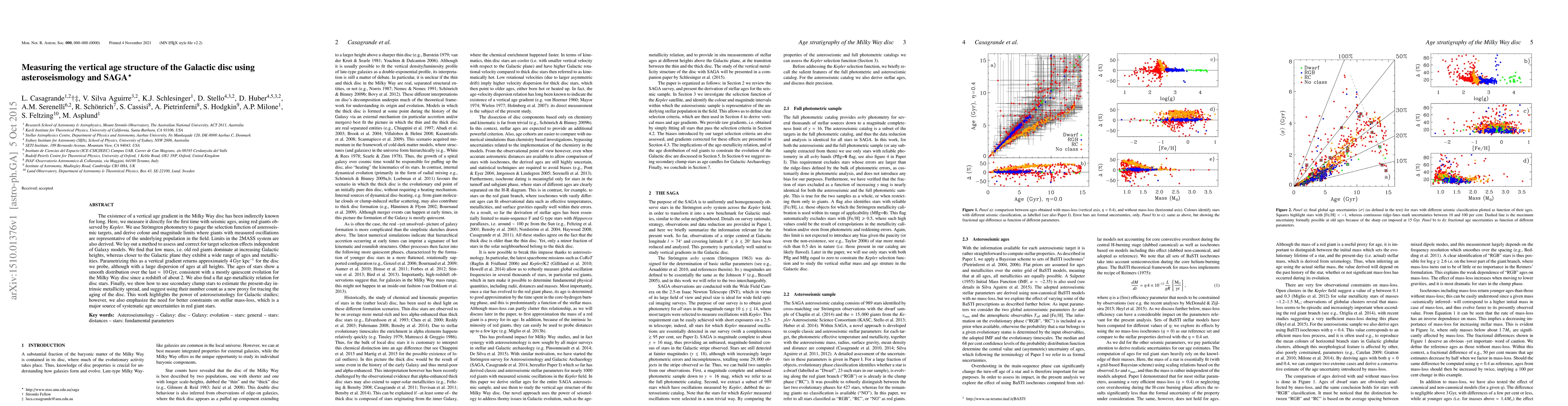 This paper directly measures the vertical age gradient in the Milky Way disc using asteroseismology and the SAGA survey, revealing that older stars dominate at higher Galactic heights. The study finds a gradient of approximately 4 Gyr/kpc, highlighting the potential of asteroseismology for Galactic studies while noting the need for better constraints on stellar mass-loss to reduce age uncertainties.