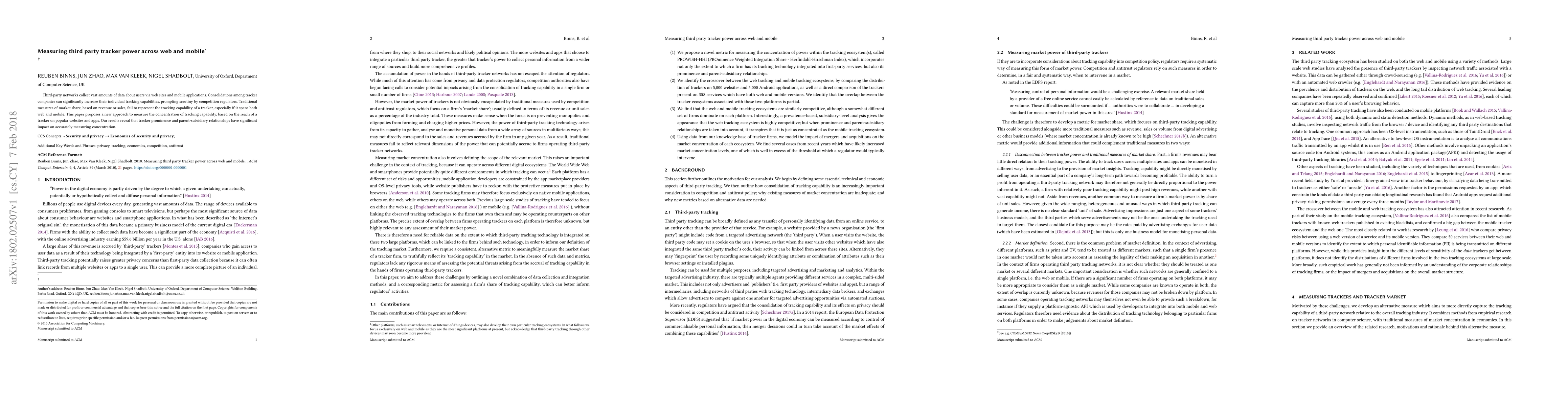 This paper introduces a novel method to assess the concentration of tracking capability among third-party networks, focusing on their reach across web and mobile platforms. It highlights that traditional market share metrics are insufficient and emphasizes the importance of tracking prominence and parent-subsidiary relationships in accurately measuring this concentration.